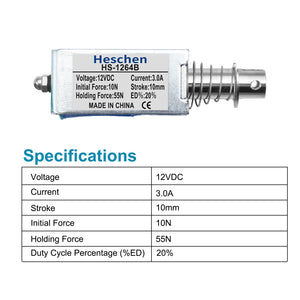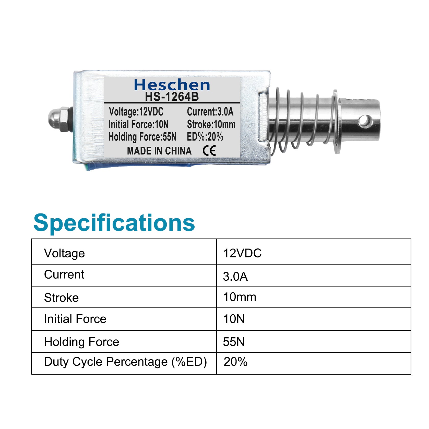 Hechen Solenoid Electromagnet HS-1264B DC12V/24V 55N 10mm Stroke Push Pull Type Open Frame Door Lock
