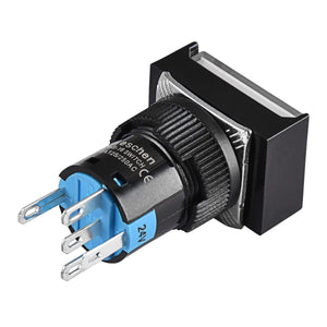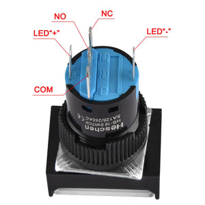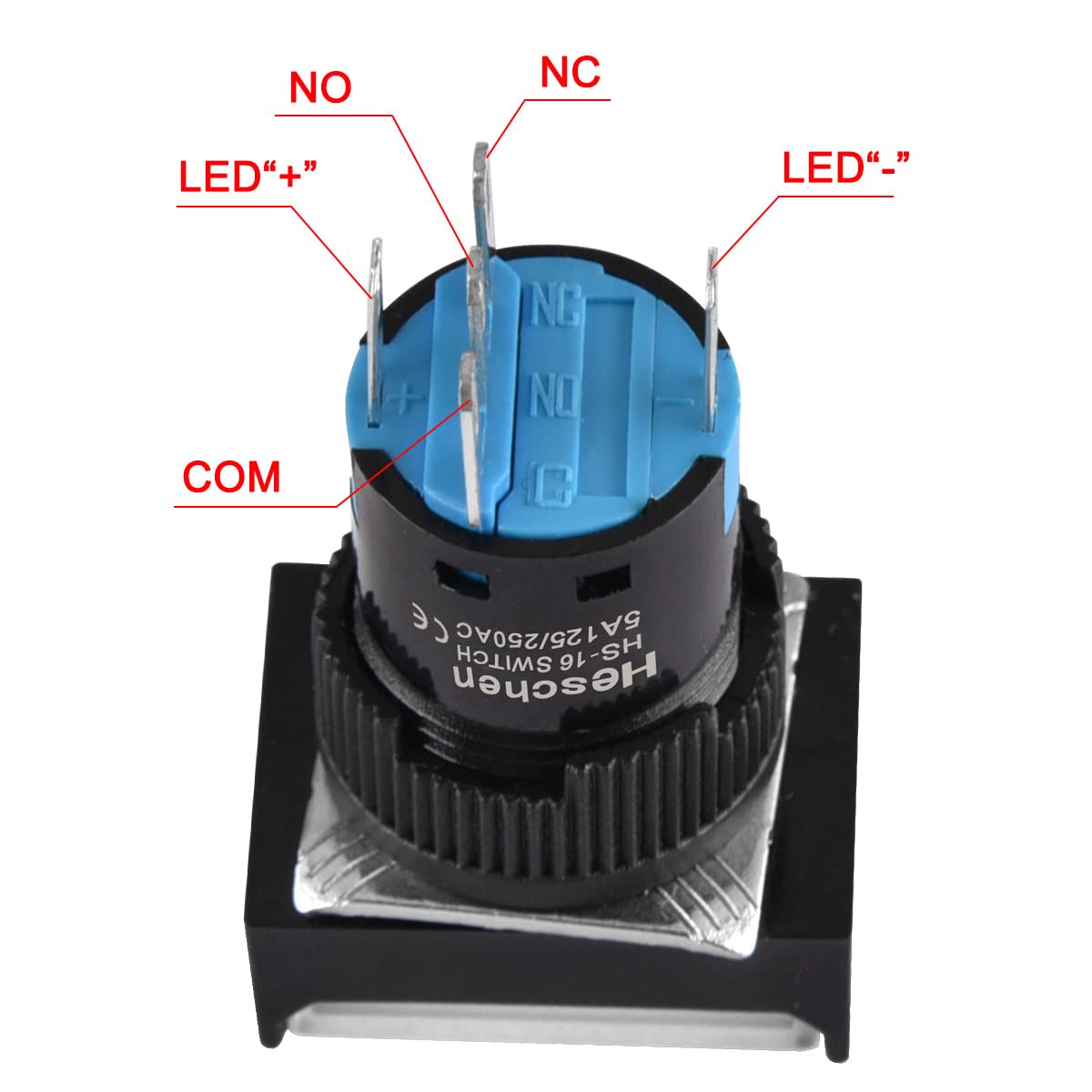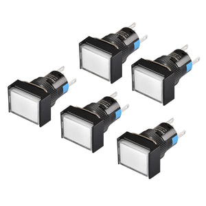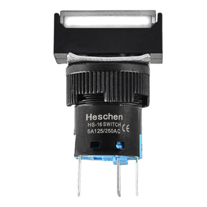 Heschen 16mm Rectangle Momentary Push Button Switch 1NO 1NC 5Pin 12V/24V/110V/220V White LED Lamp 5 Pack