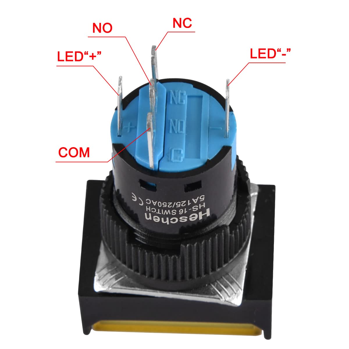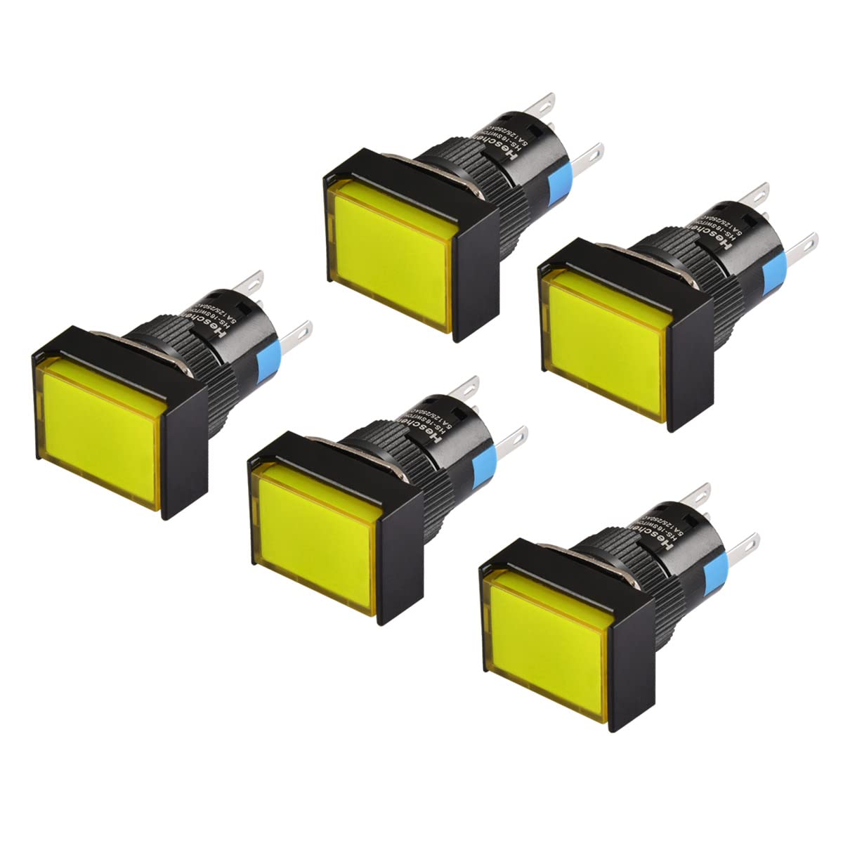 Heschen 16mm Rectangle Momentary Push Button Switch 1NO 1NC 5Pin 12V/24V/110V/220V Yellow LED Lamp 5 Pack