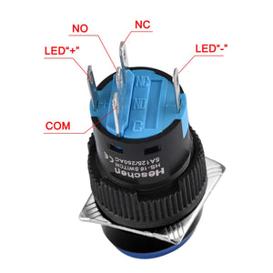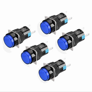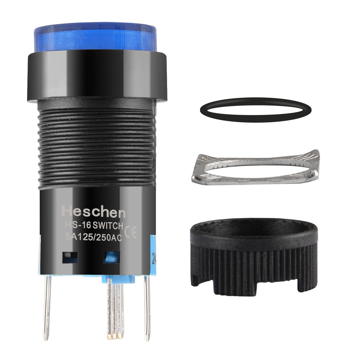 Heschen 16mm Round Latching Push Button Switch 1NO 1NC 12V/24V/110V/220V Bule LED Lamp 5 Pack