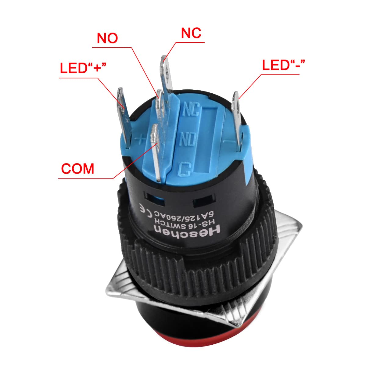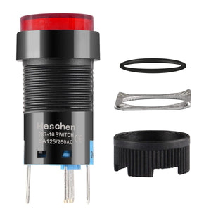 Heschen 16mm Round Latching Push Button Switch 1NO 1NC 12V/24V/110V/220V Red LED Lamp 5 Pack