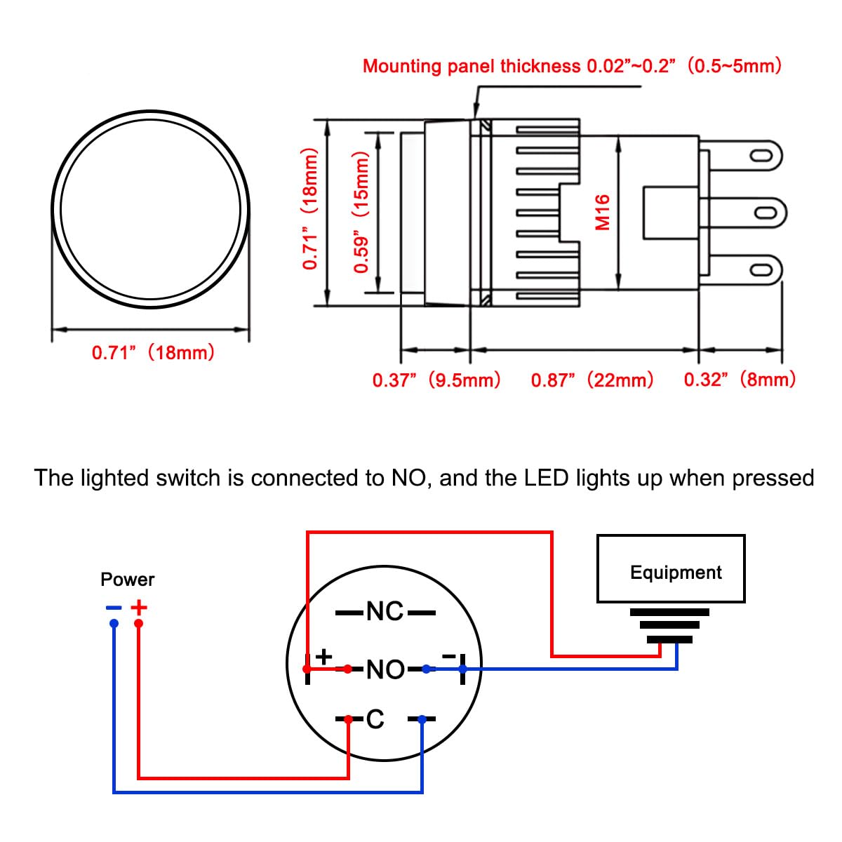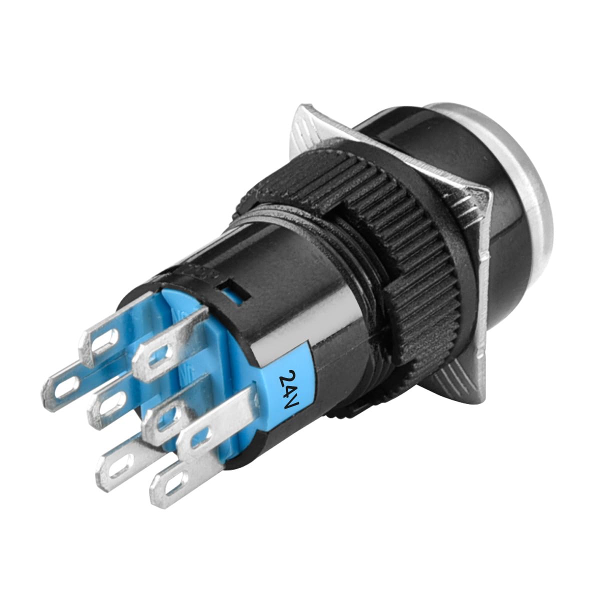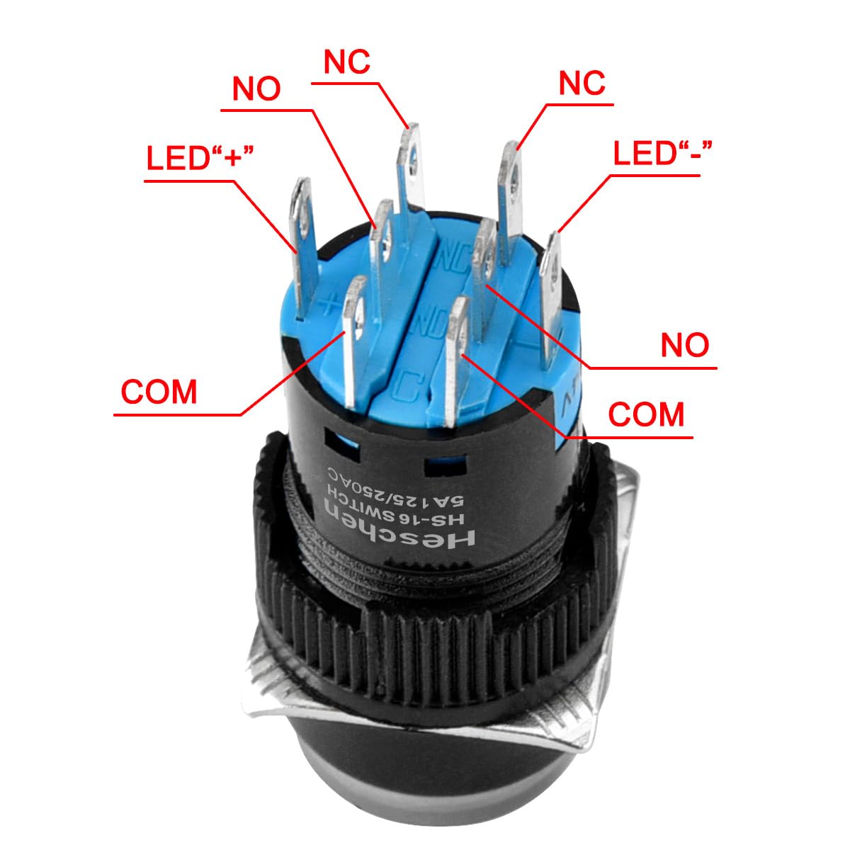 Heschen 16mm Round Push Button Switch, HS-16, 2NO 2NC, Momentary Type, 12V/24V/110V/220V White LED Lamp, 8 Pin, 5 Pack