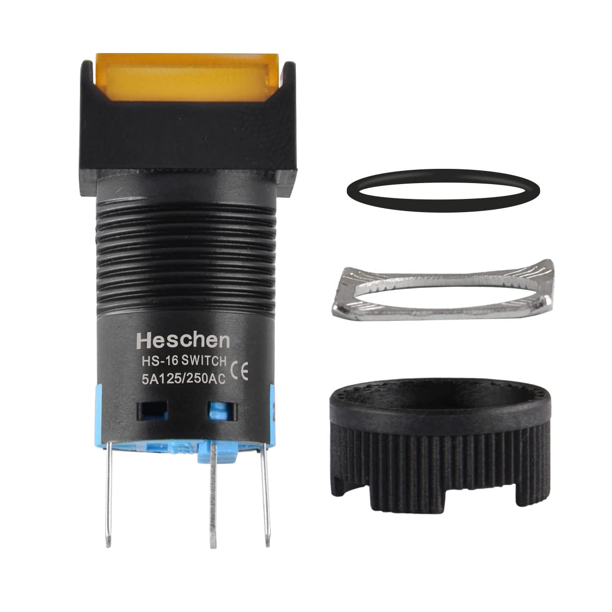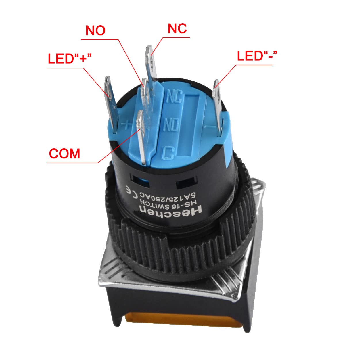 Heschen 16mm Square Latching Push Button Switch 1NO 1NC 12V/24V/110V/220V Orange LED Lamp 5 Pack