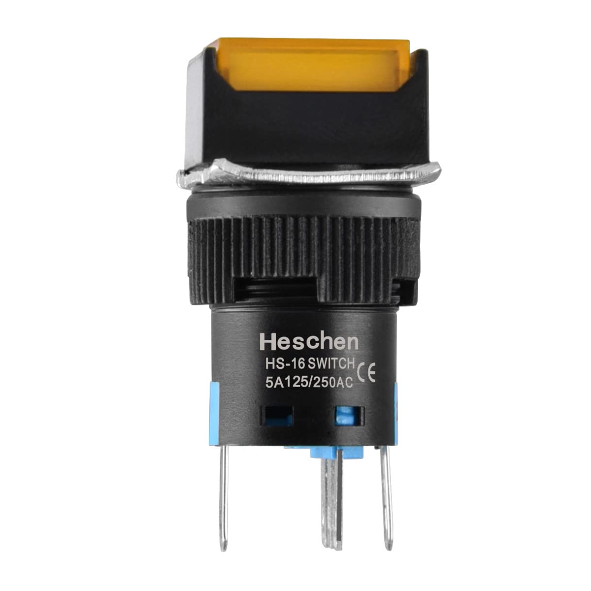 Heschen 16mm Square Momentary Push Button Switch 1NO 1NC 12V/24V/110V220V Orange LED Lamp 5 Pack