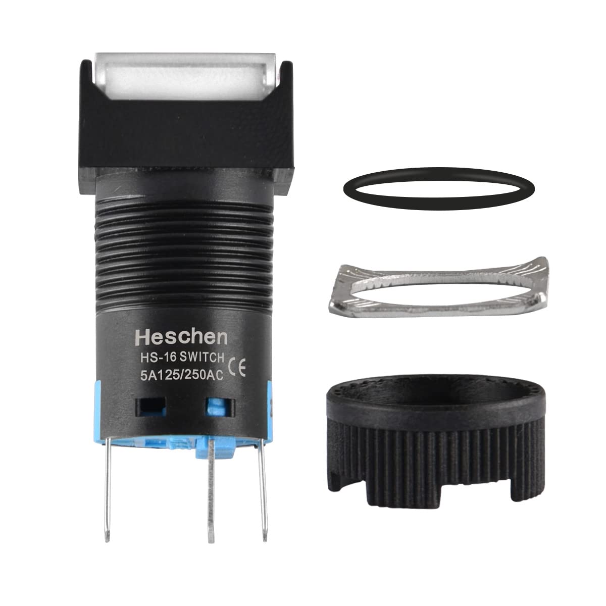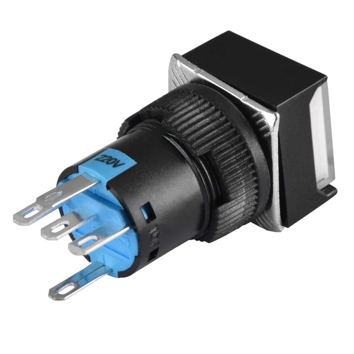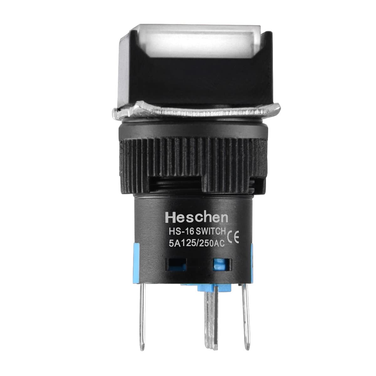 Heschen 16mm Square Momentary Push Button Switch 1NO 1NC 12V/24V/110V220V White LED Lamp 5 Pack