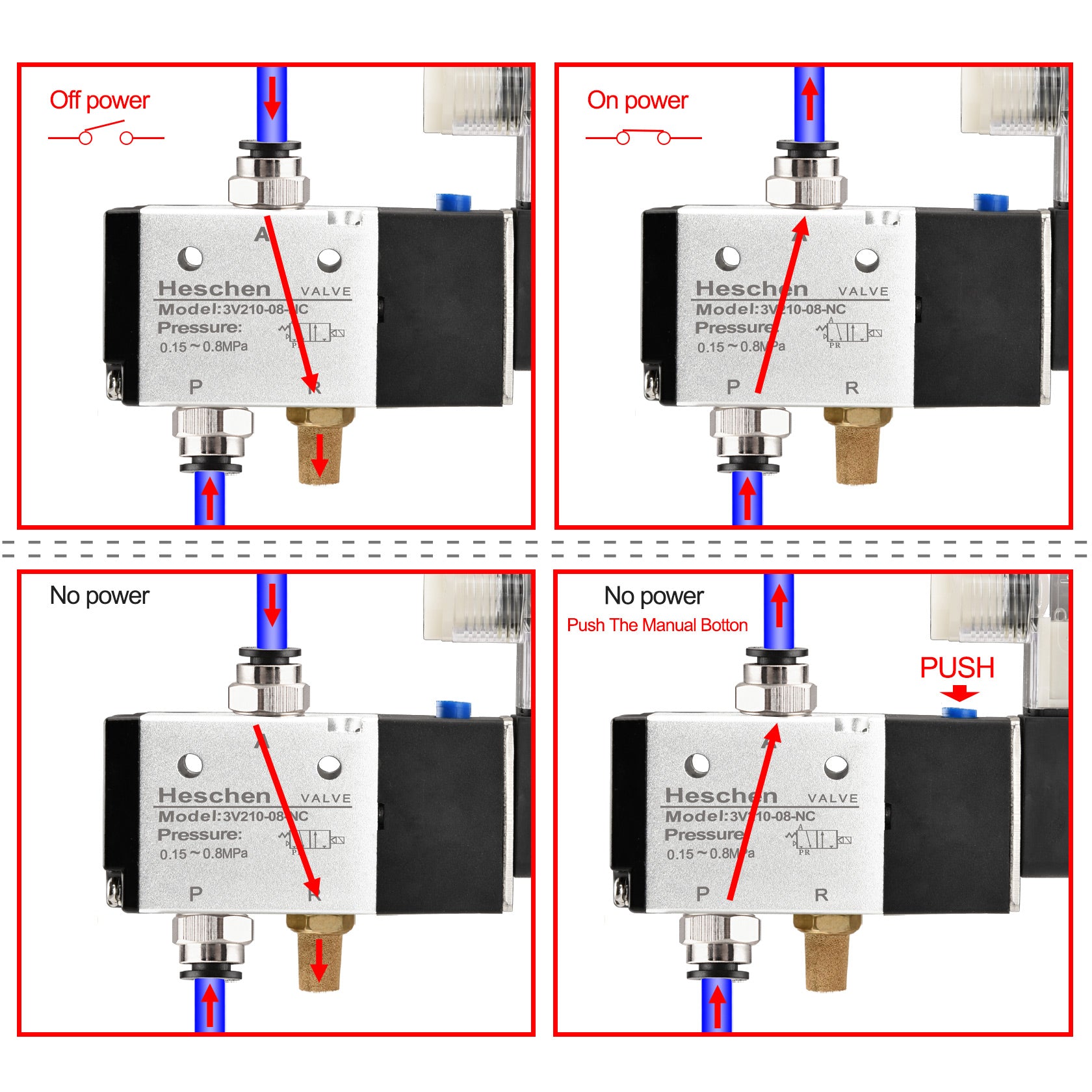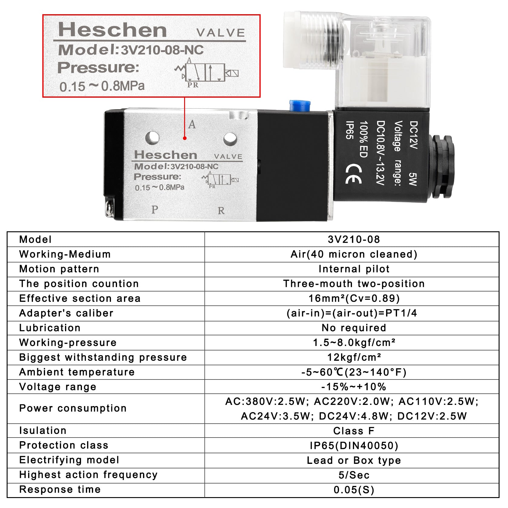 Heschen Electrical Pneumatic Solenoid Valve 3V210-08 12 VDC/24 VDC/110 VAC/220 VAC PT1/4 3/2 Way CE