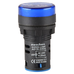 HesChen LED Indicator Pilot Light AD16-22DS DC 12V/24V AC 110V/220V 20mA Energy Saving Blue Pack of 2