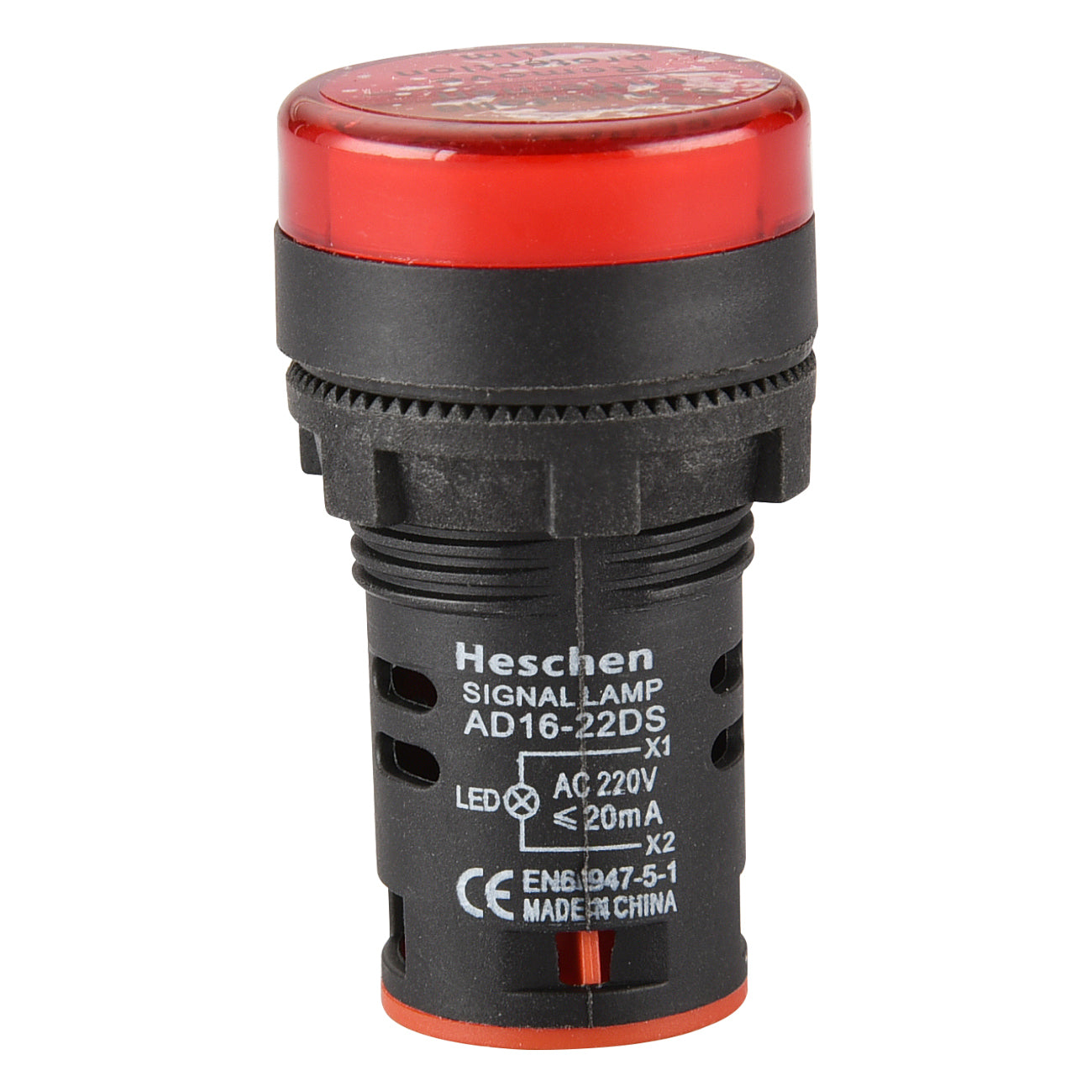HesChen LED Indicator Pilot Light AD16-22DS DC 12V/24V AC 110V/220V 20mA Energy Saving Red Pack of 2