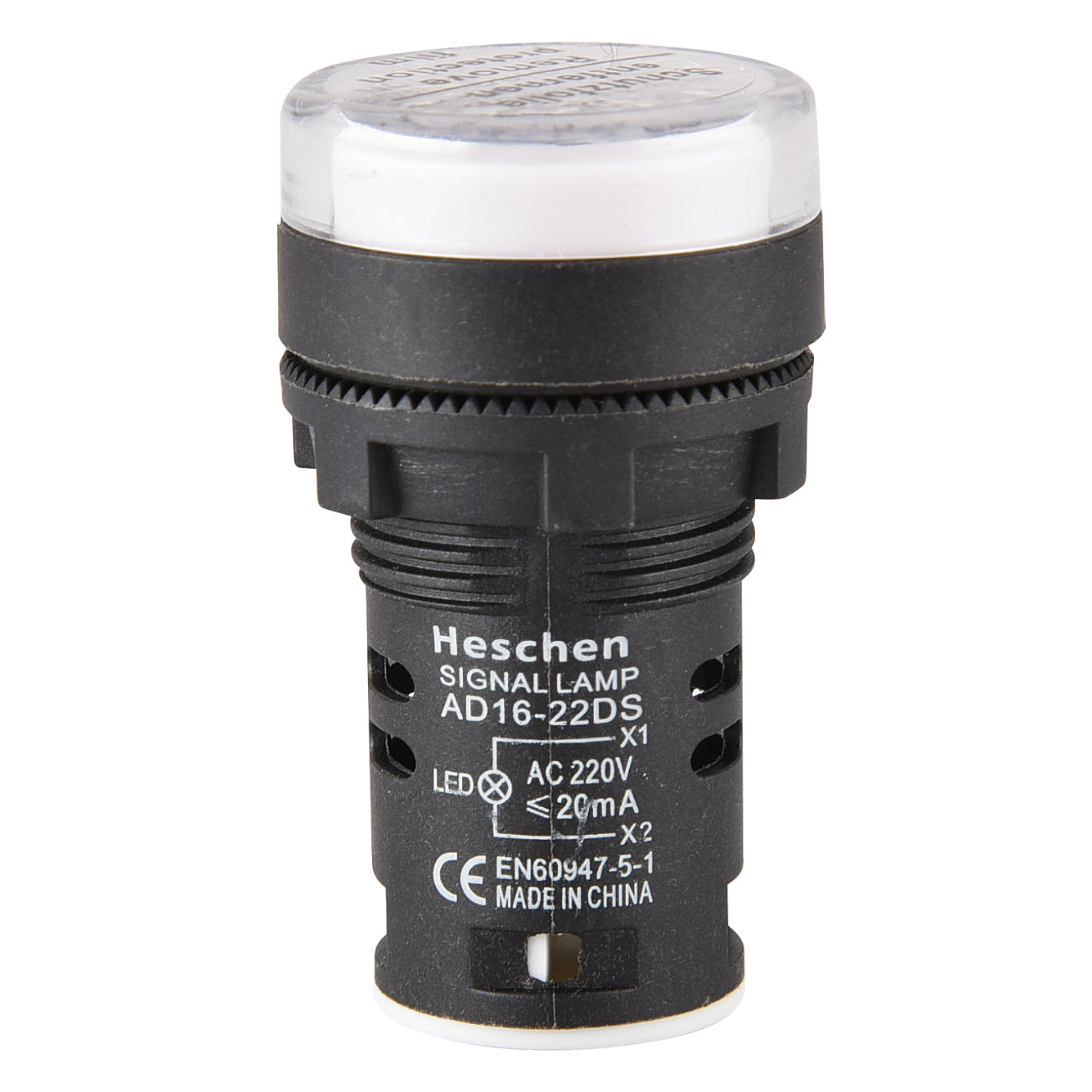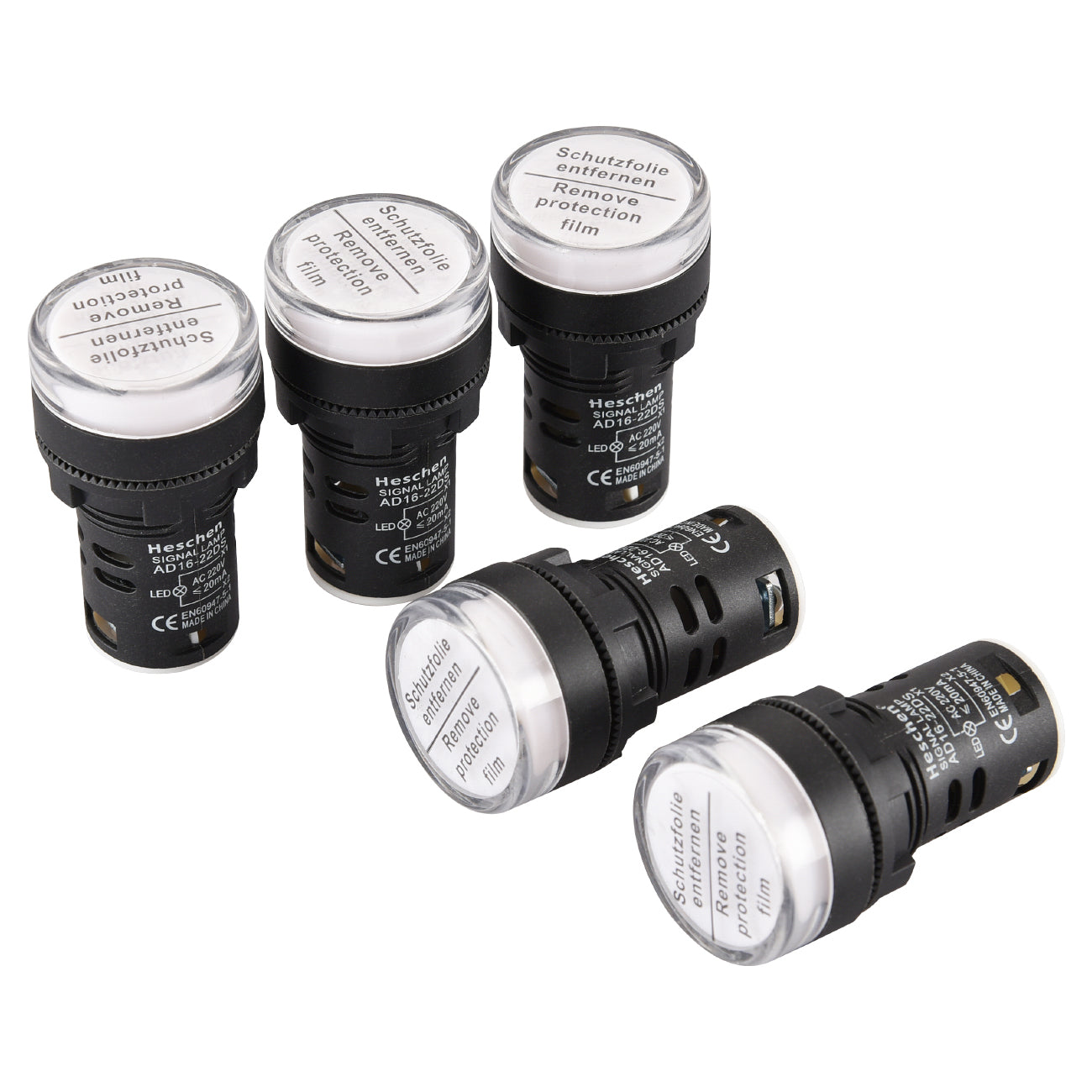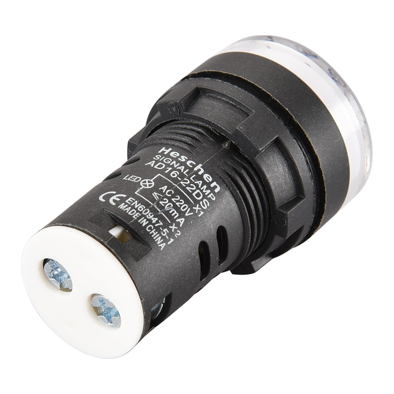 HesChen LED Indicator Pilot Light AD16-22DS DC 12V/24V AC 110V/220V 20mA Energy Saving White Pack of 2