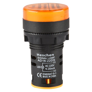 HesChen LED Indicator Pilot Light AD16-22DS DC 12V/24V AC 110V/220V 20mA Energy Saving Yellow Pack of 2