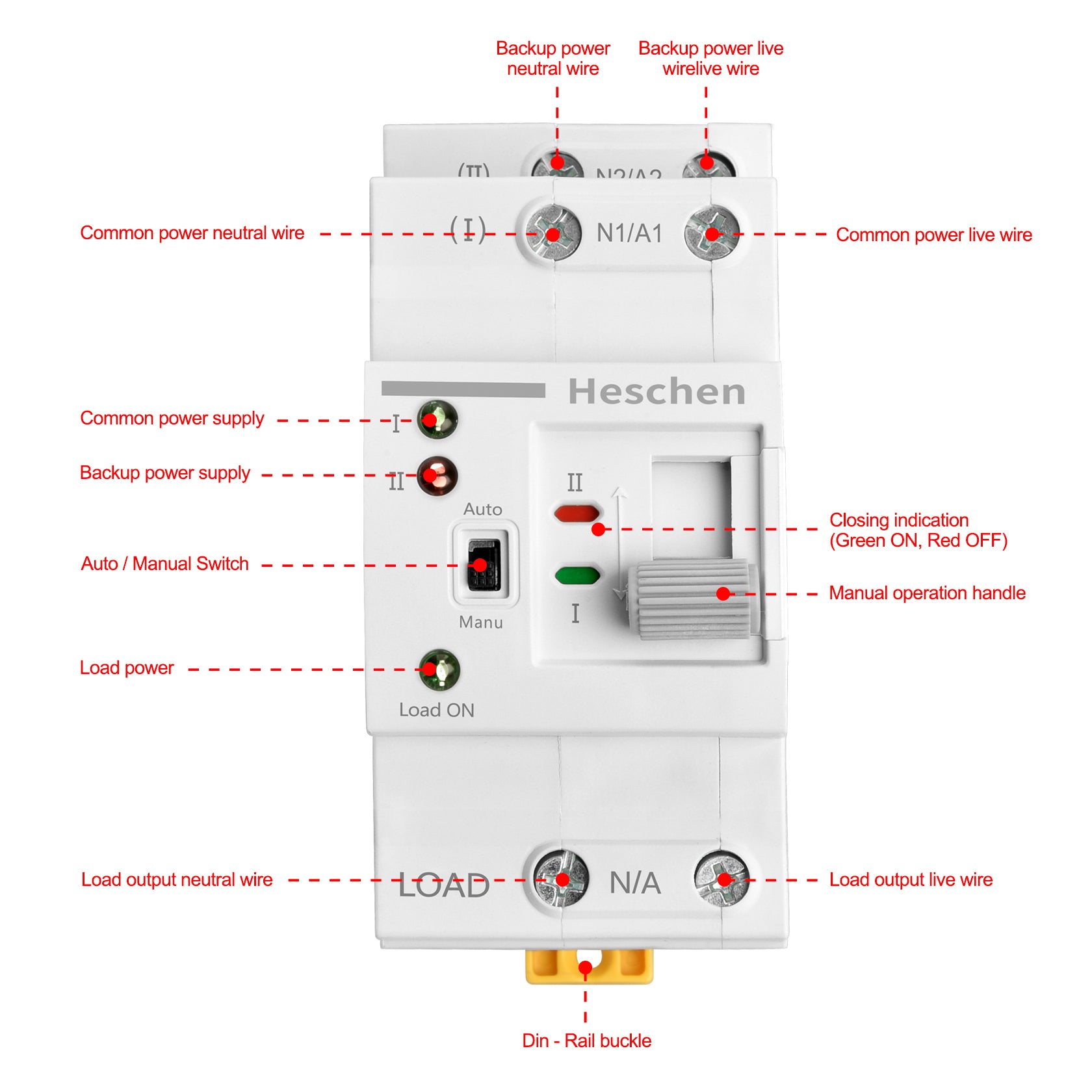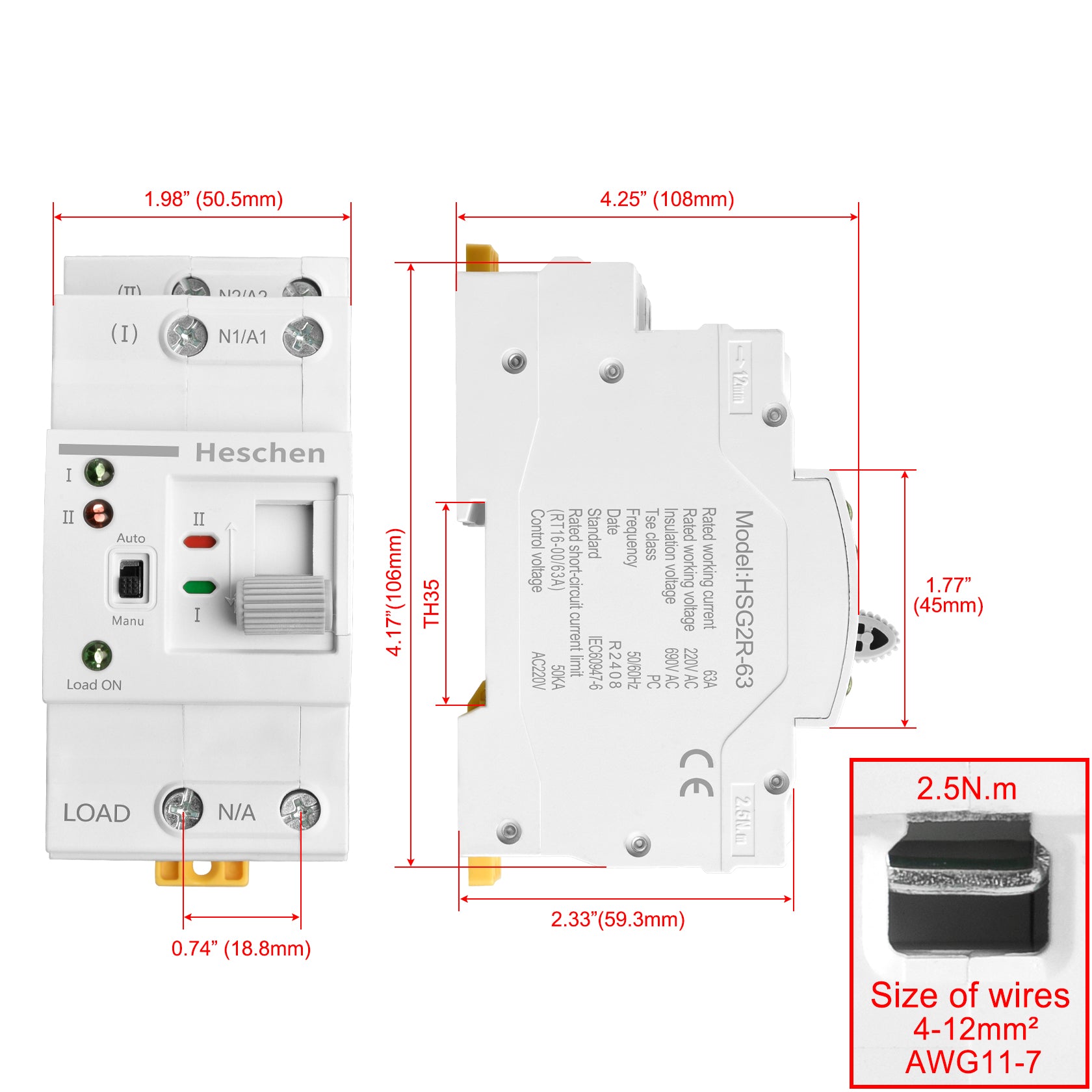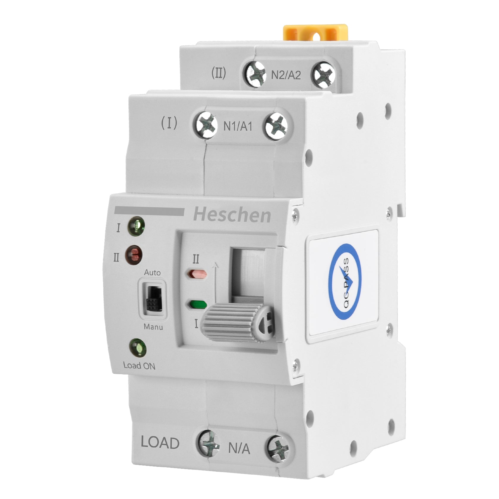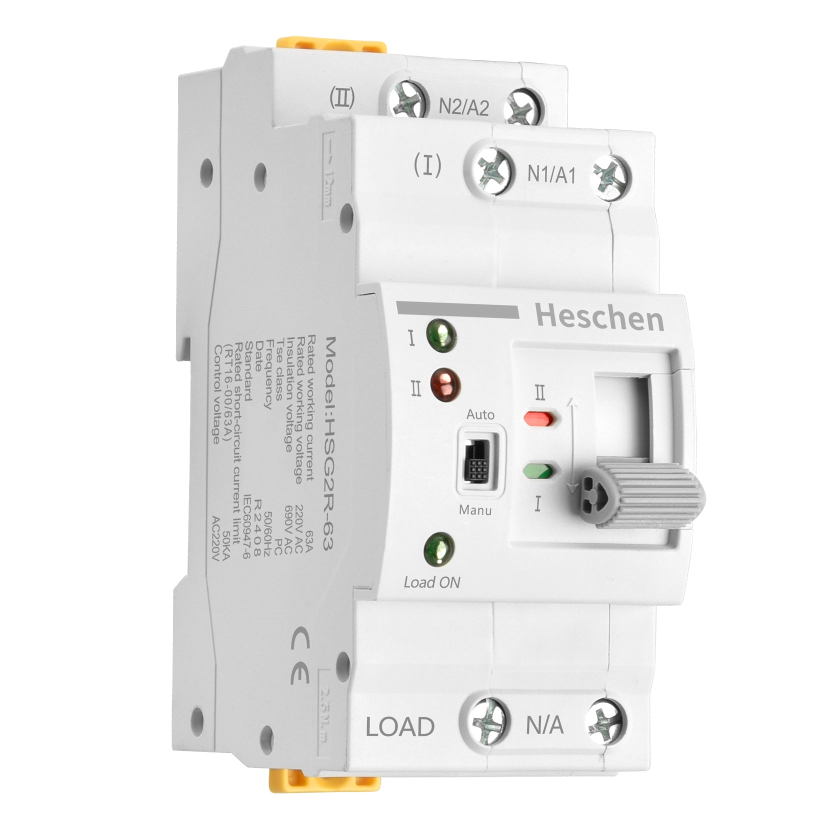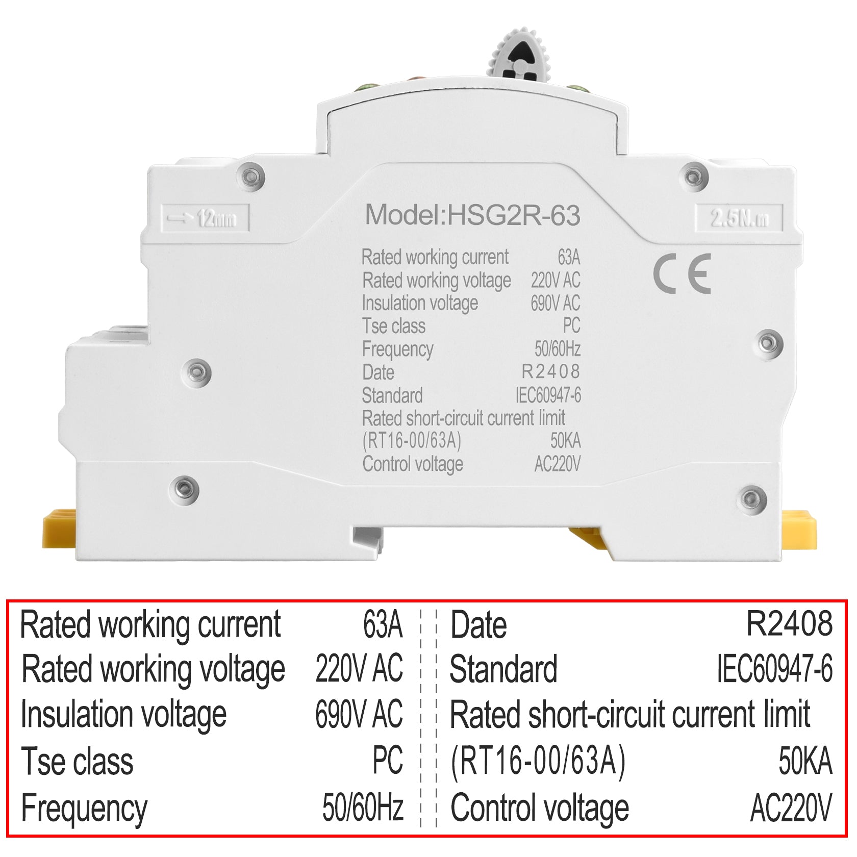 Heschen ATS Dual Power Automatic Transfer Switch, HSG2R-63, 2P, 63A 220VAC, PC Class, Power Supply Controller Uninterrupted Transfer Switch, 35mm DIN Rail Mounting