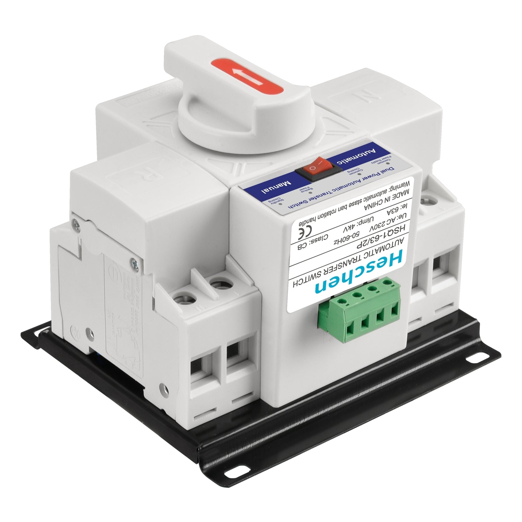 Heschen ATS Dual Power Automatic Transfer Switch, HSQ1-63 2P, 63A 220VAC, CB Class, Auto/Manual,For Equipment With High Power Stability Requirements