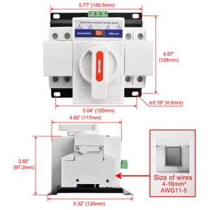 - Ue: AC 220V; Ie: 63A; Uimp: 4kV; Model: Auto/Manual