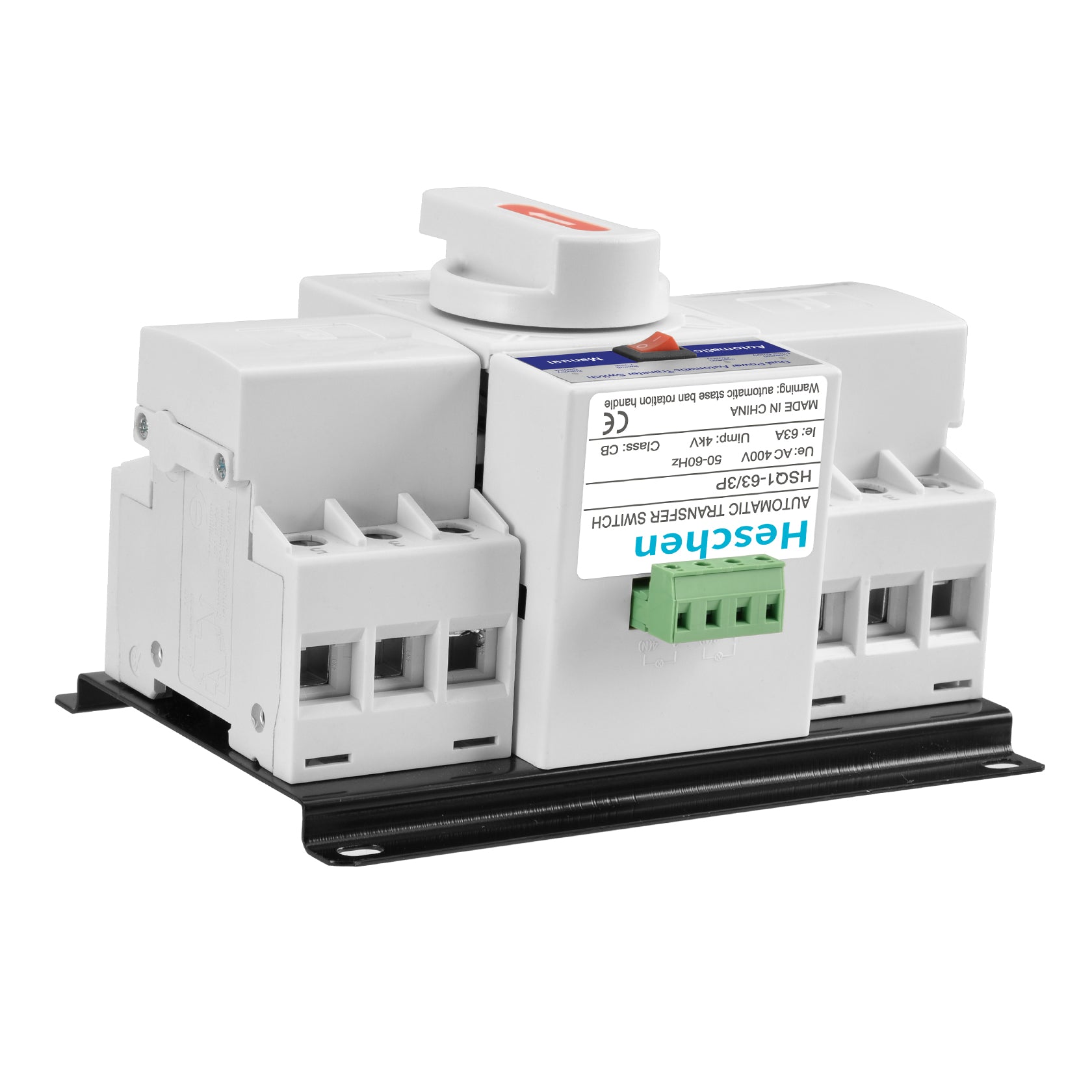 Heschen ATS Dual Power Automatic Transfer Switch, HSQ1-63 3P, 63A 400VAC, CB Class, Auto/Manual,For Equipment With High Power Stability Requirements