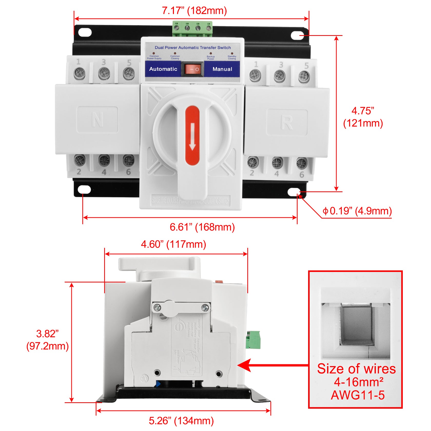 - Ue: AC 220V; Ie: 63A; Uimp: 4kV; Model: Auto/Manual