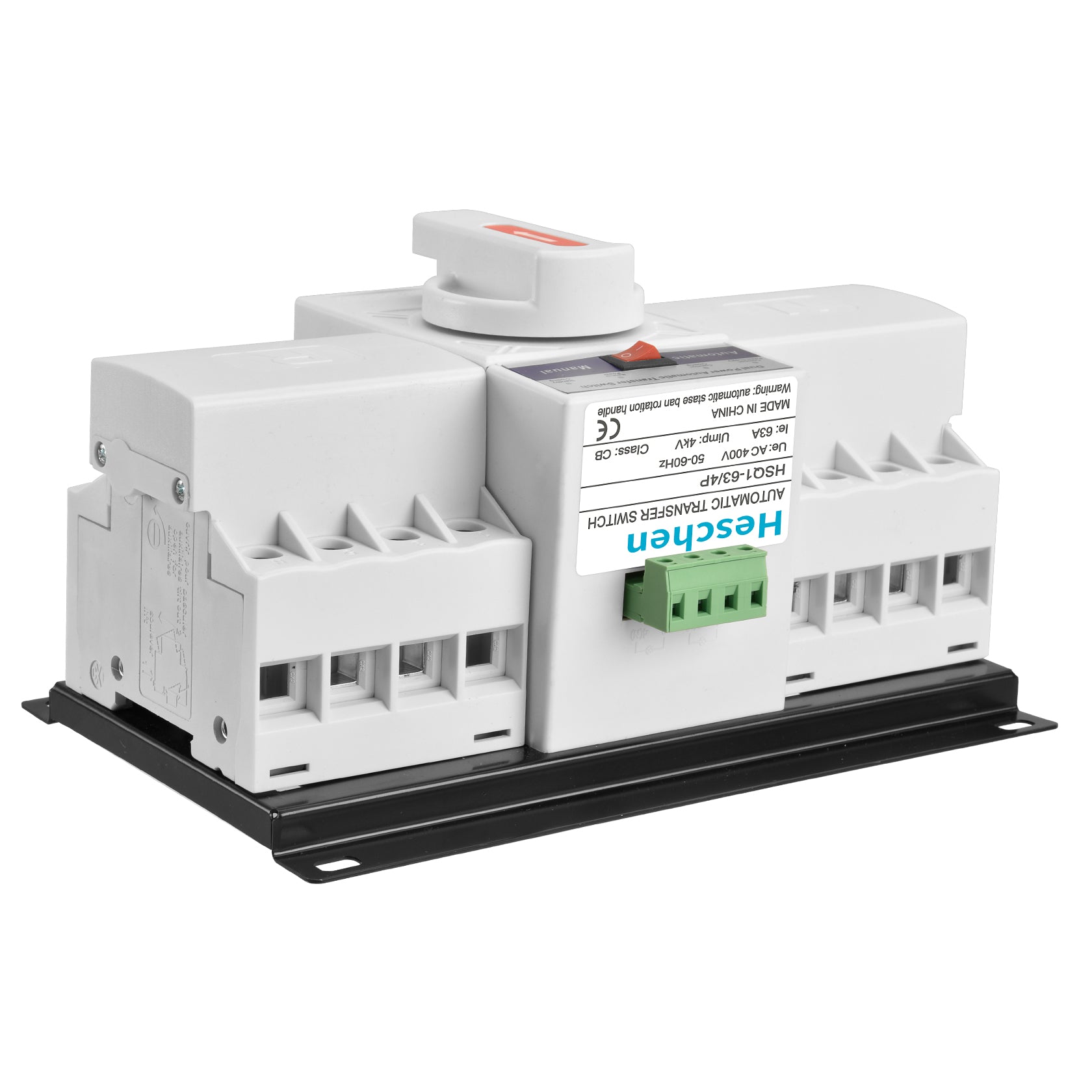 Heschen ATS Dual Power Automatic Transfer Switch, HSQ1-63 4P, 63A 400VAC, CB Class,Auto/Manual,For Equipment With High Power Stability Requirements