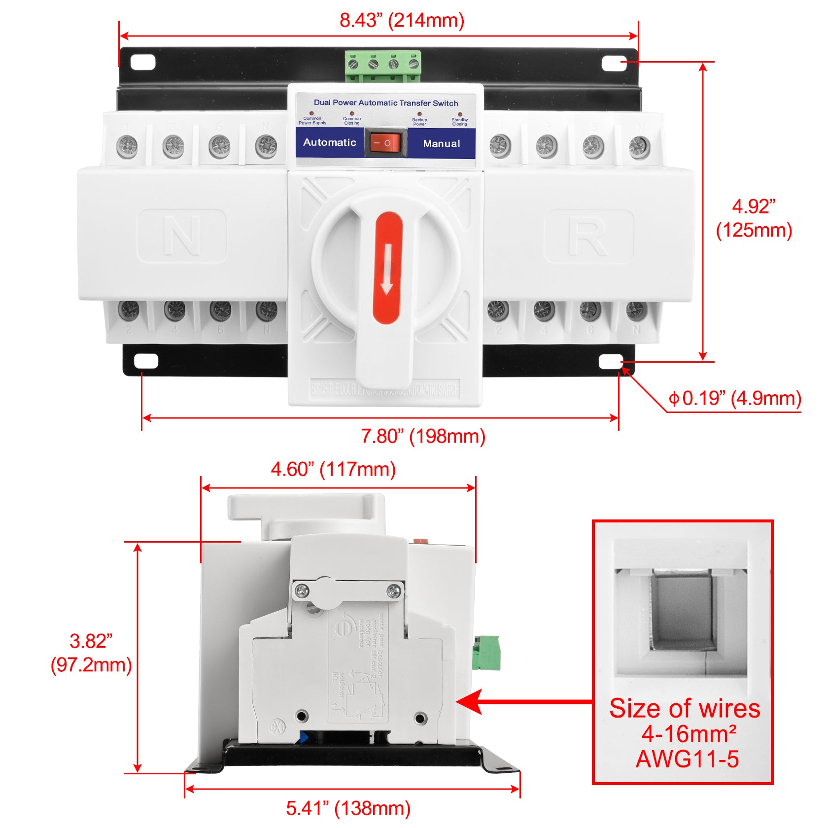- Ue: AC 220V; Ie: 63A; Uimp: 4kV; Model: Auto/Manual