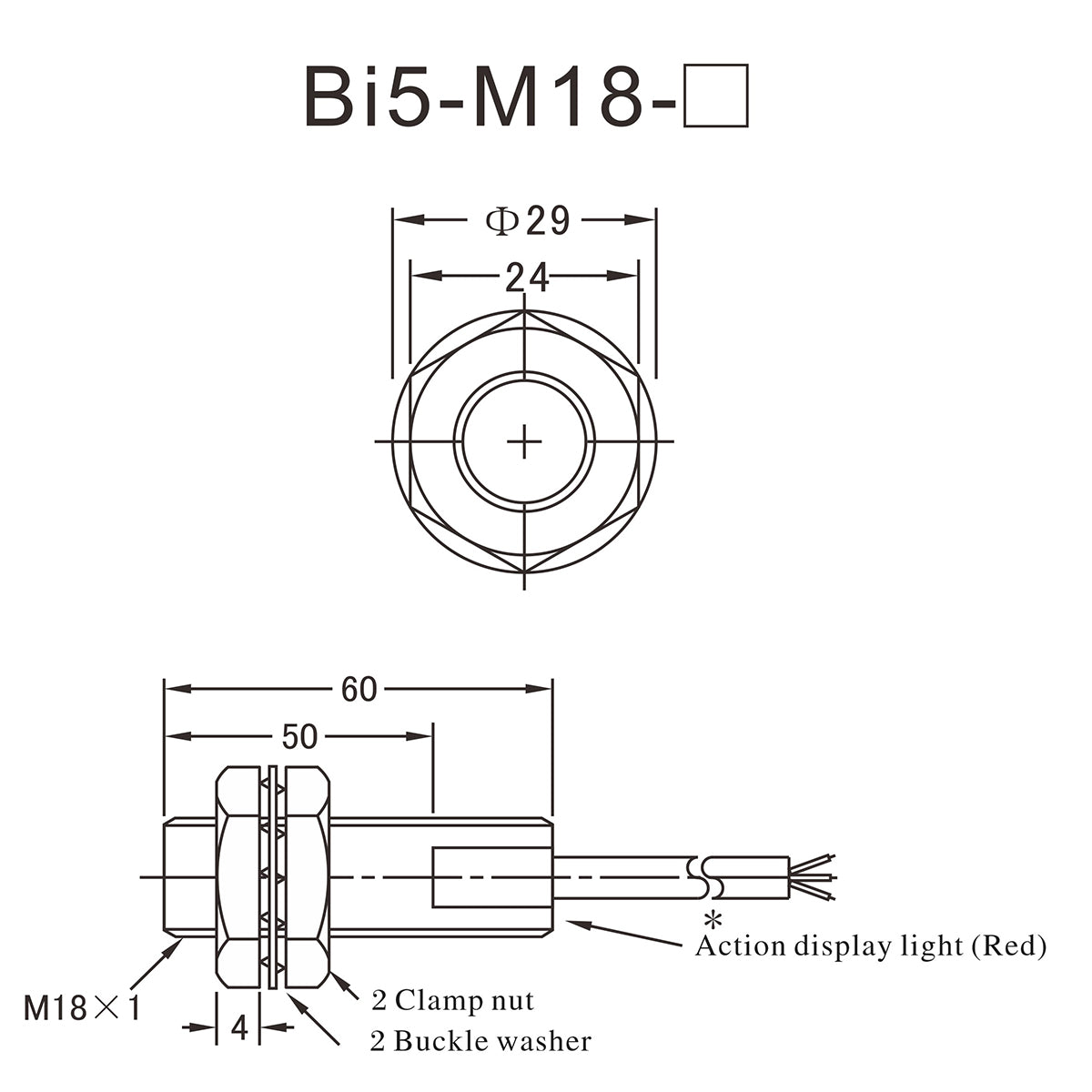 Heschen 5mm Embedded Inductive Sensor Switch Bi5-M18-AP6X Cylindrical Type DC 10-30V 3 Wire PNP NO(Normally Open) CE