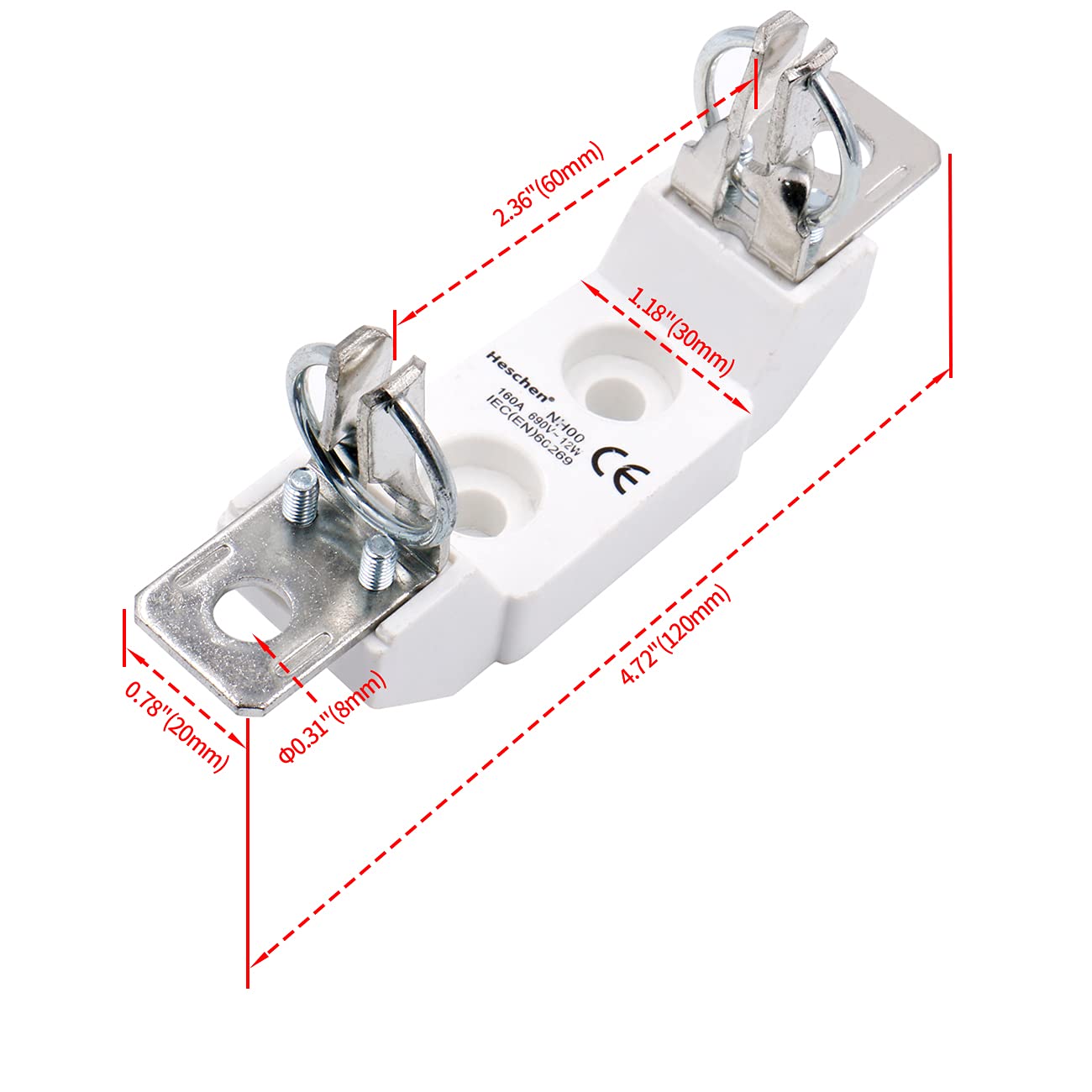 Heschen Ceramic Single-Pole Fuse Holder NH00 160A 690V 12W for NH Fuse-Link