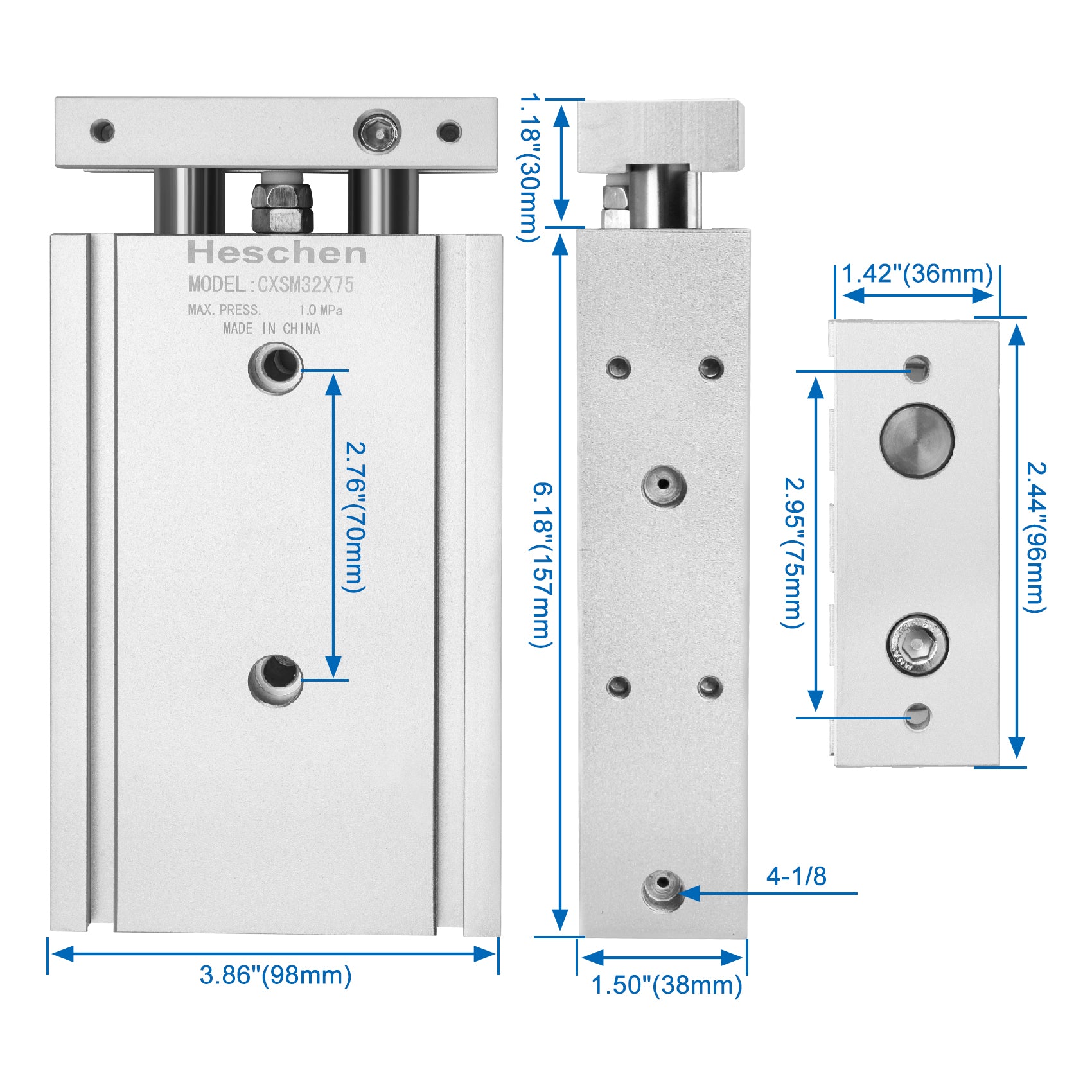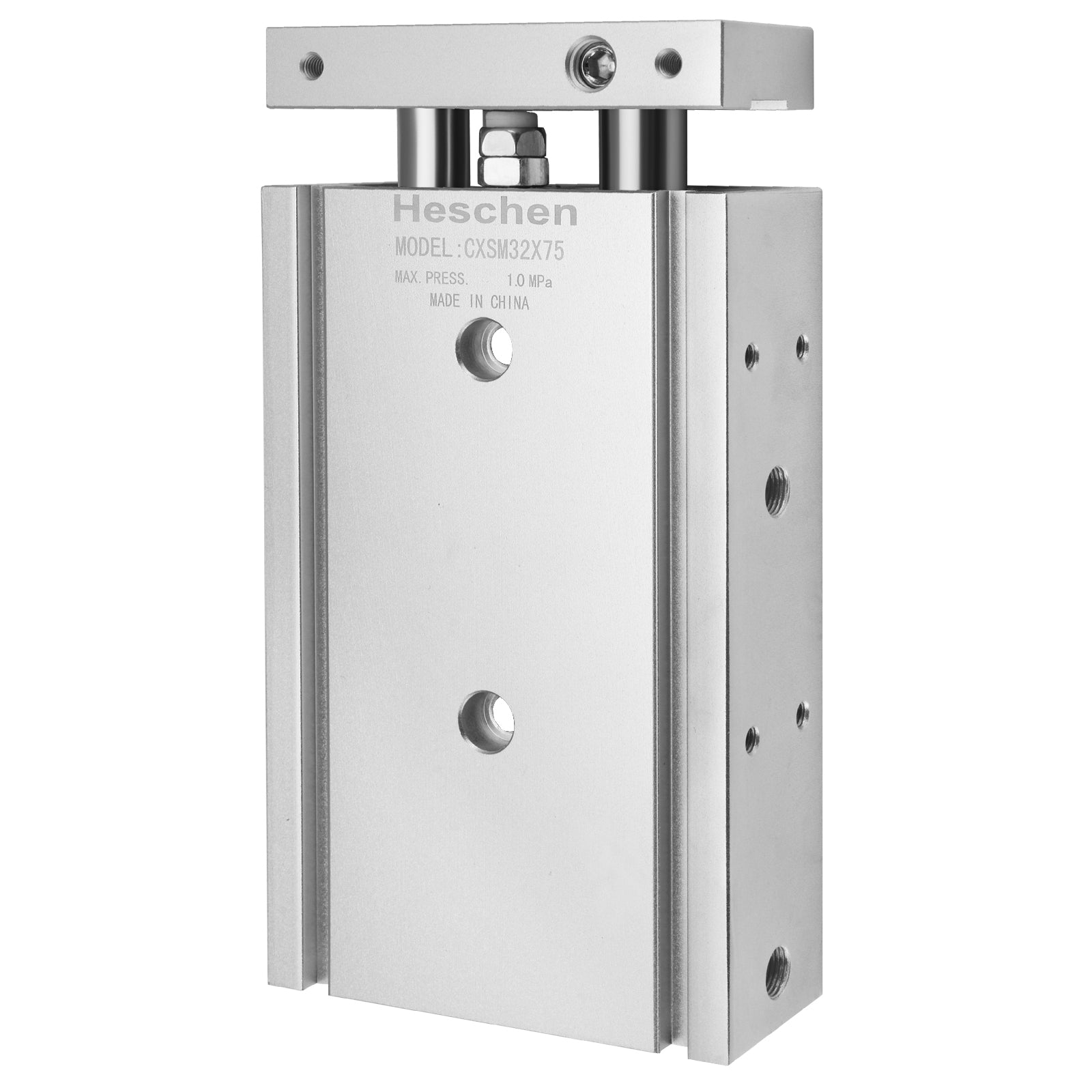 Heschen Compact Aluminum Air Cylinder CXSM 32-75 Guide Rod Plate Double Rod Guided Pneumatic Slide Bearing Cushioned