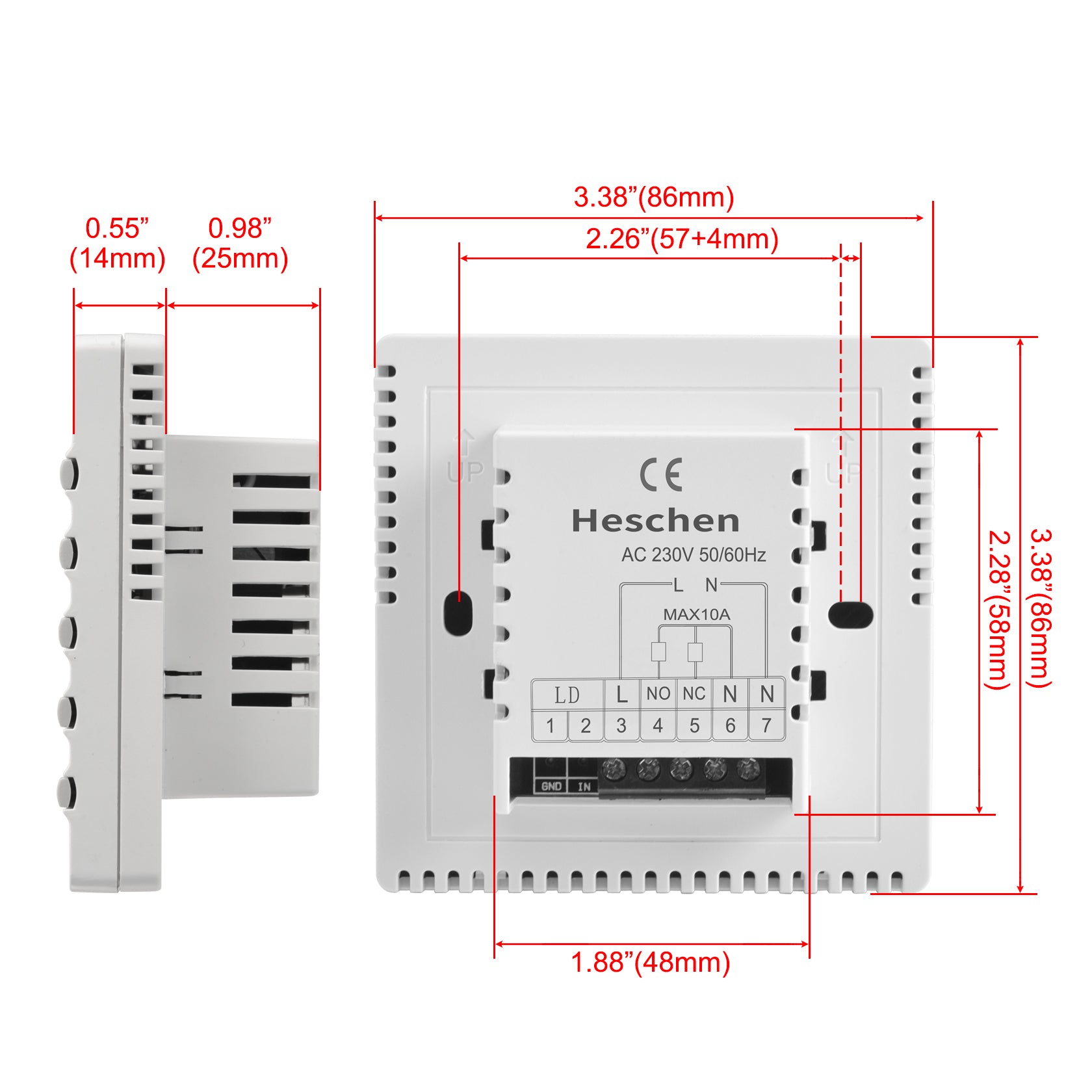 Heschen Programmable Thermostat LCD Digital D702 110V/220V AC, 10Amp Work for Radiant Floor Heating Temperature Controller White