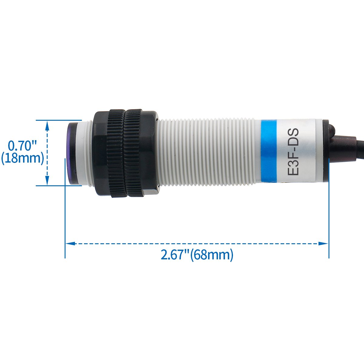 Heschen M18 Photoelectric Sensor Diffuse Reflection Sensor Switch E3F-DS10Y2 NC AC90-250V 400mA Sensing Distance 10cm 2 Wires