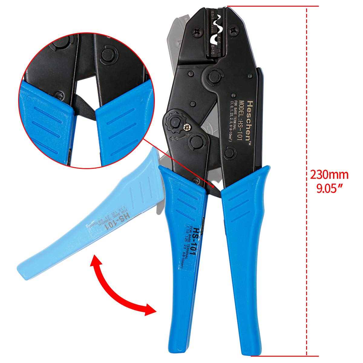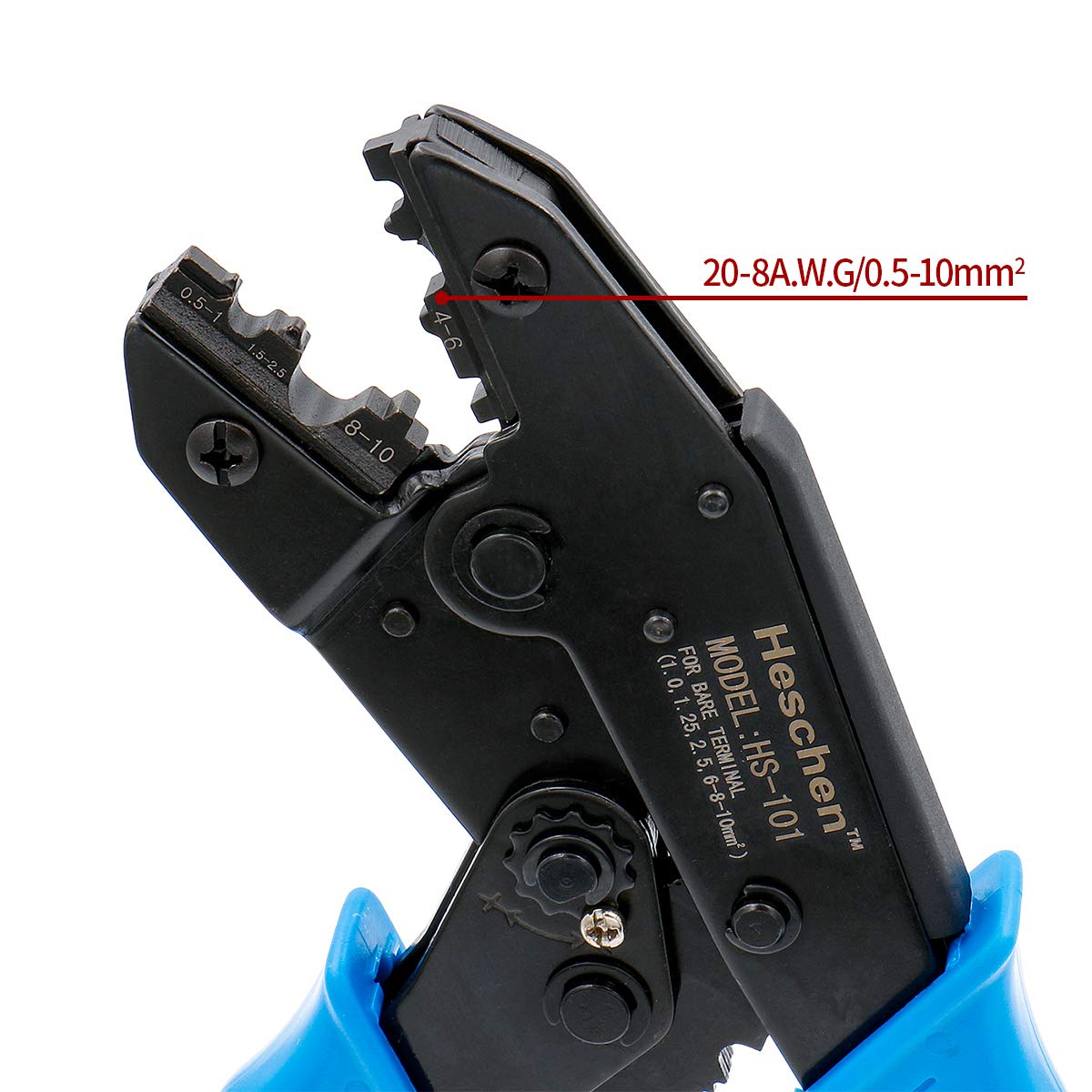 Heschen Ratchet Crimper Plier HS-101 Non-Insulated Cable Terminals Crimping Tools Use for 1.5-10 mm² (15-7 AWG) Blue