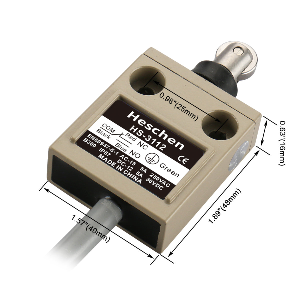 Heschen Roller Plunger Sealed Limit Switch HS-3112(TZ-3112) Momentary 1NO 1NC SPDT IP67 Waterproof