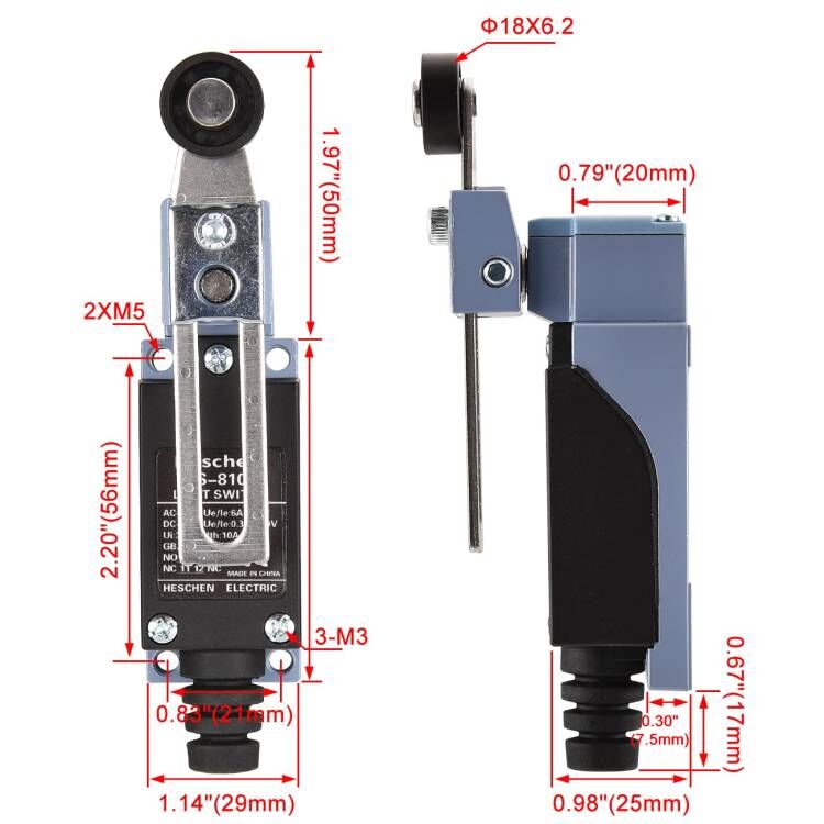 Heschen Limit switch HS-8108(TZ-8108, ME-8108, XCE 145) Adjustable Roller Lever 10A 250VAC SPDT Momentary for CNC Mill Plasma IP65
