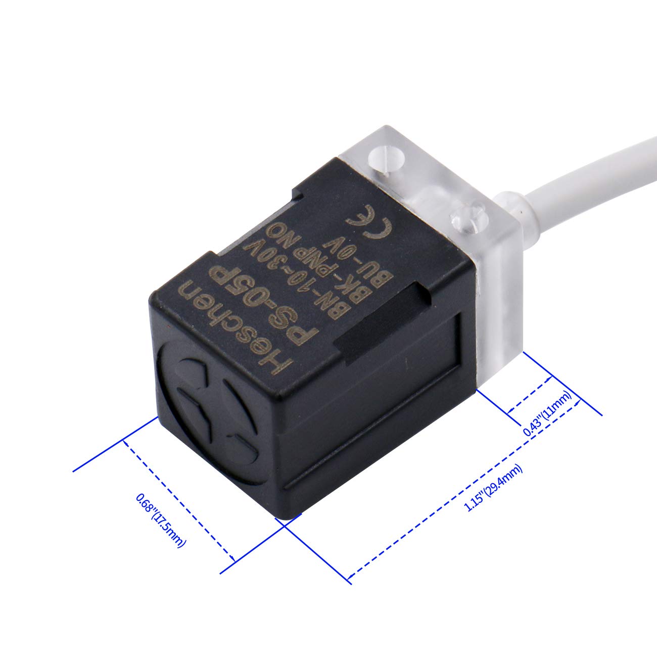 Heschen Inductive Proximity Switch PS-05P, 10-30V 200mA, PNP NO, Sensor Distance 5mm, CE
