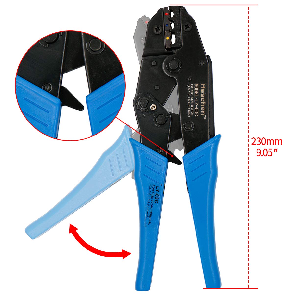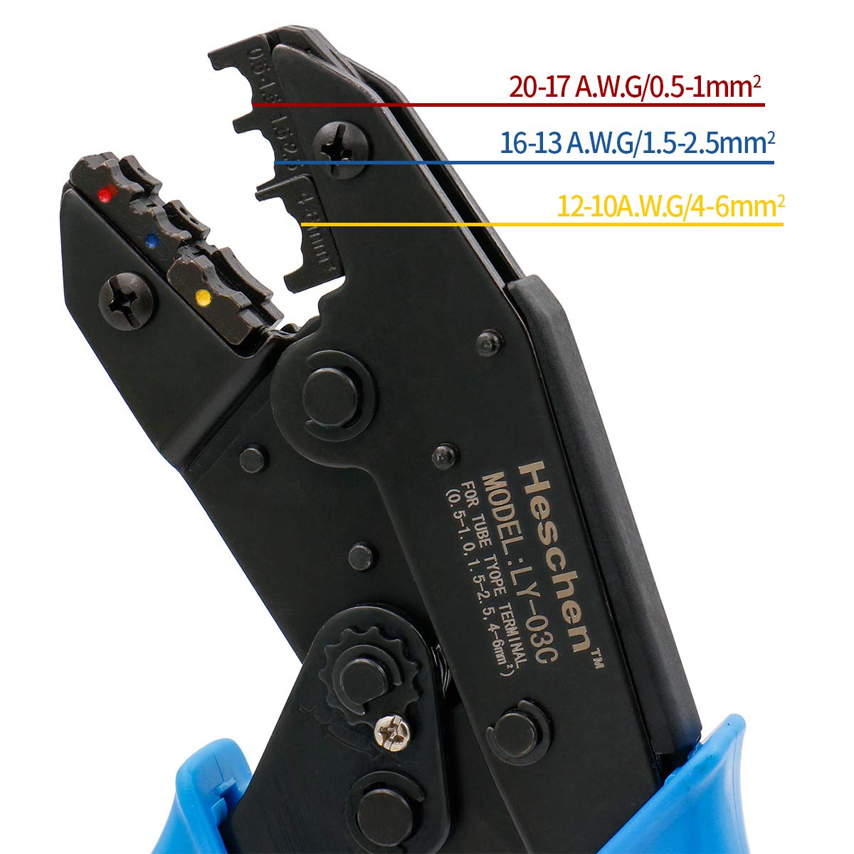 Heschen Ratchet Crimper Plier LY-03C Insulated Terminals Crimping Tools Use for 0.5-6 mm² (20-10 AWG) Blue