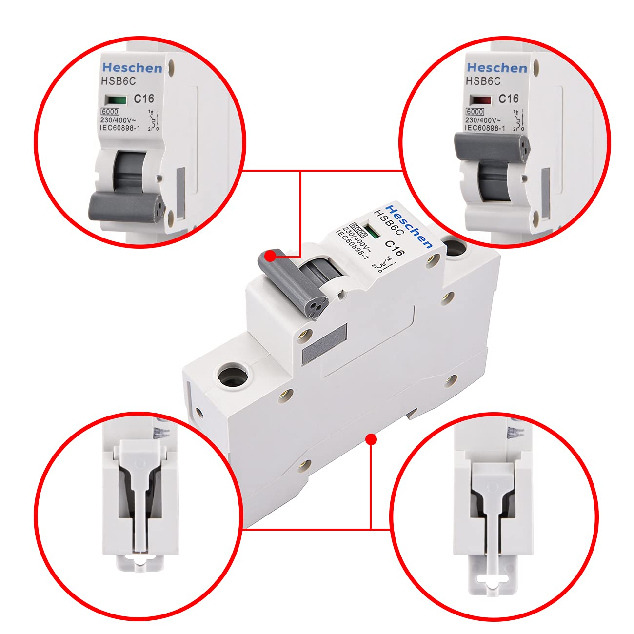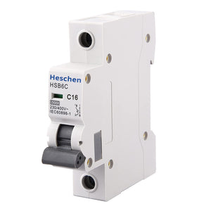 Heschen Miniature Circuit Breaker HSB6C, 16 Amp Current, 1 Pole, Type C, 6kA Breaking Capacity, DIN Rail Mounting