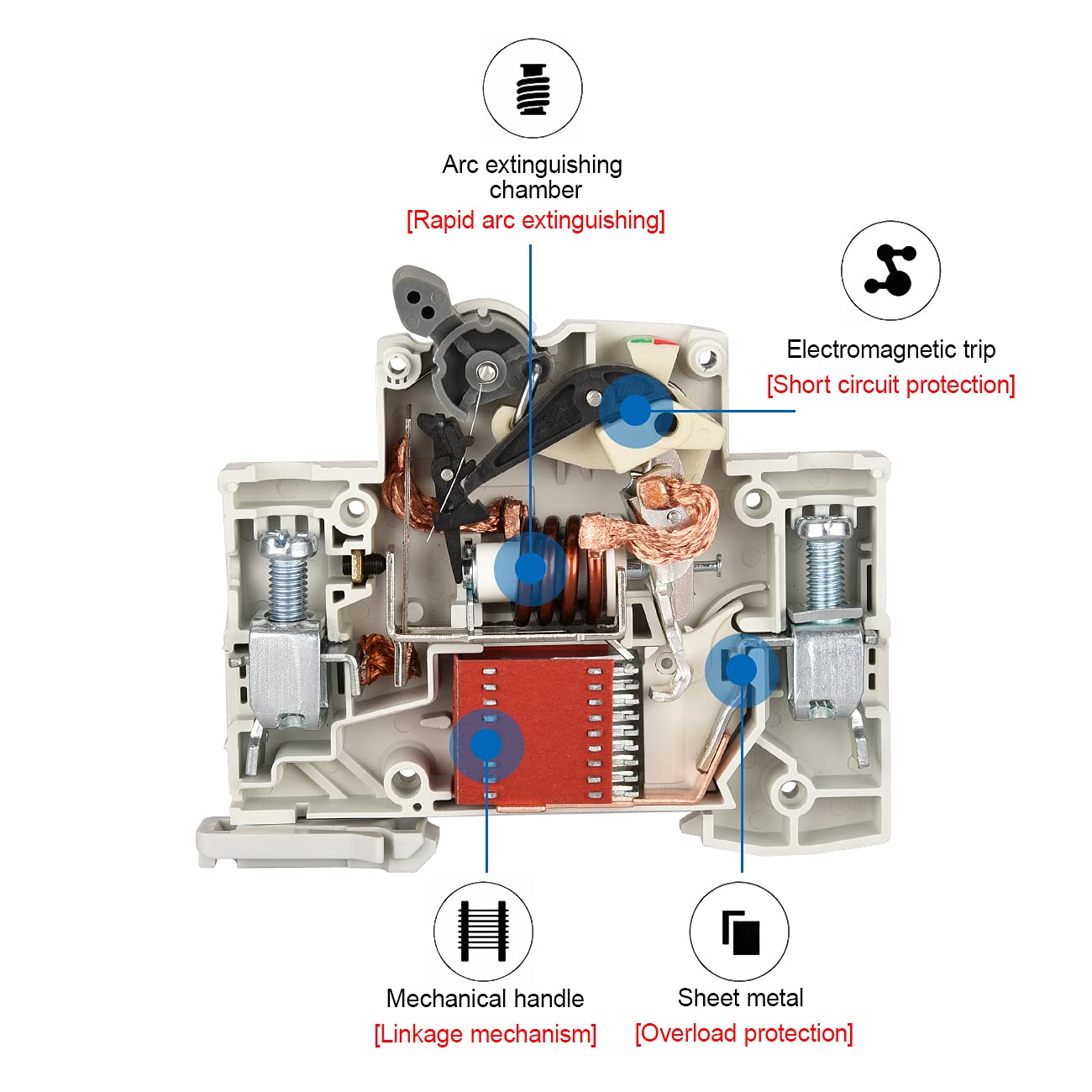 With flame-resistant and shock-resistant plastic, which is of high performance, the miniature circuit breaker could ensure long service time. Small size and light weight, it has reliable performance, high breaking capacity and sensitive action. Used for overload protection, short circuit protection of equipment, and for lines that do not require frequent switching.