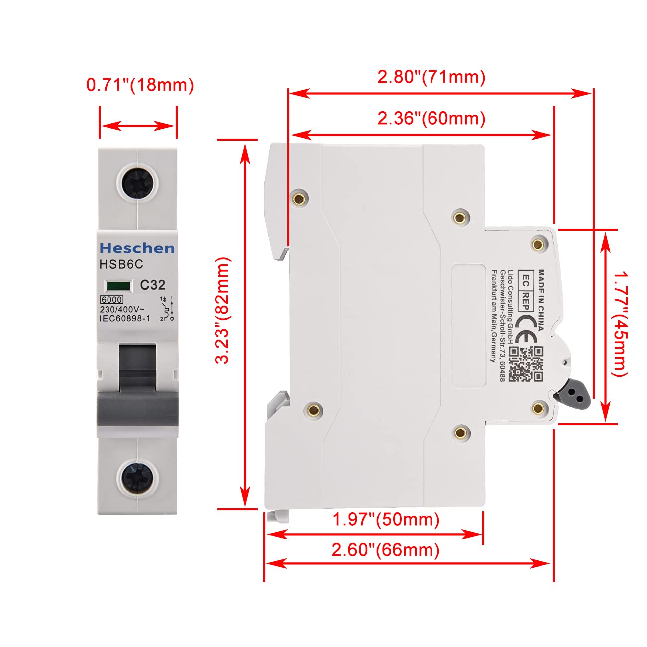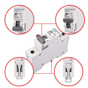 Heschen Miniature Circuit Breaker HSB6C, 32 Amp Current, 1 Pole, Type C, 6kA Breaking Capacity, 35mm DIN Rail Mounting