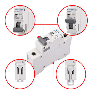 Heschen Miniature Circuit Breaker HSB6C, 63 Amp Current, 1 Pole, Type C, 6kA Breaking Capacity, 35mm DIN Rail Mounting