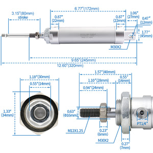 - Bore: 40mm(1.58''); Stroke: 80mm (3'')