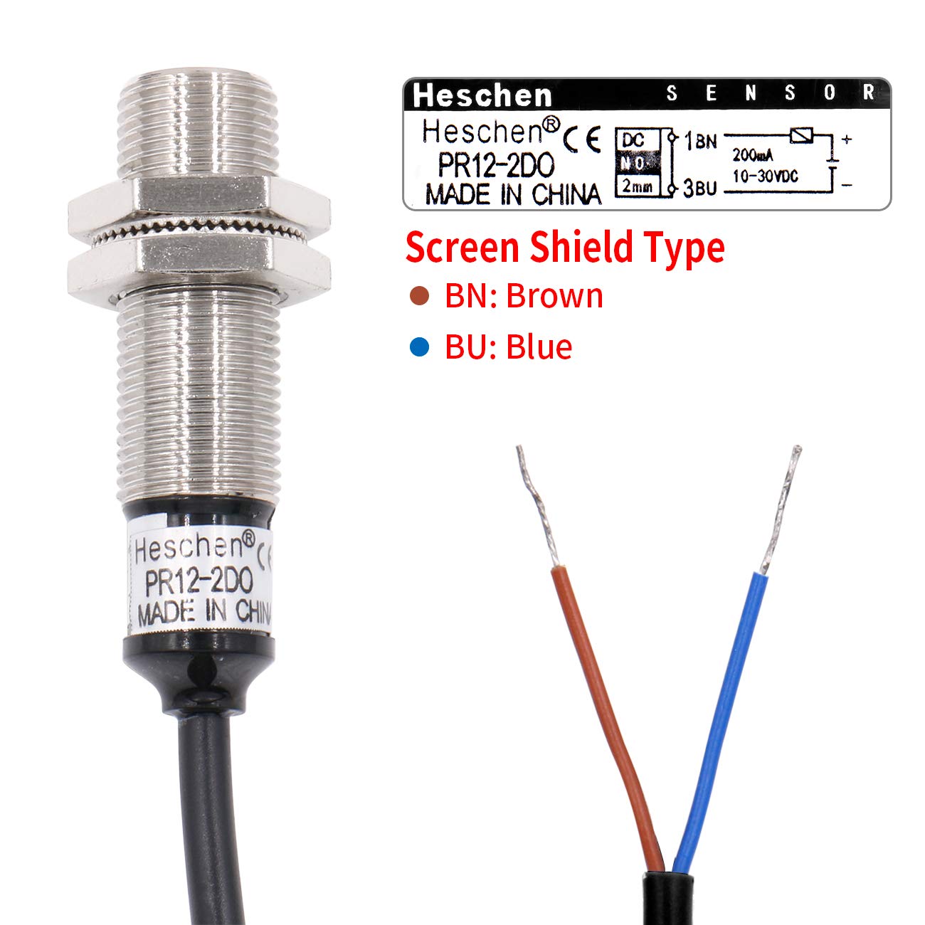 Heschen Inductive Proximity Sensor PR12-2DO Cylindrical Type DC 12-24V 2-Wire NO(Normally Open) CE