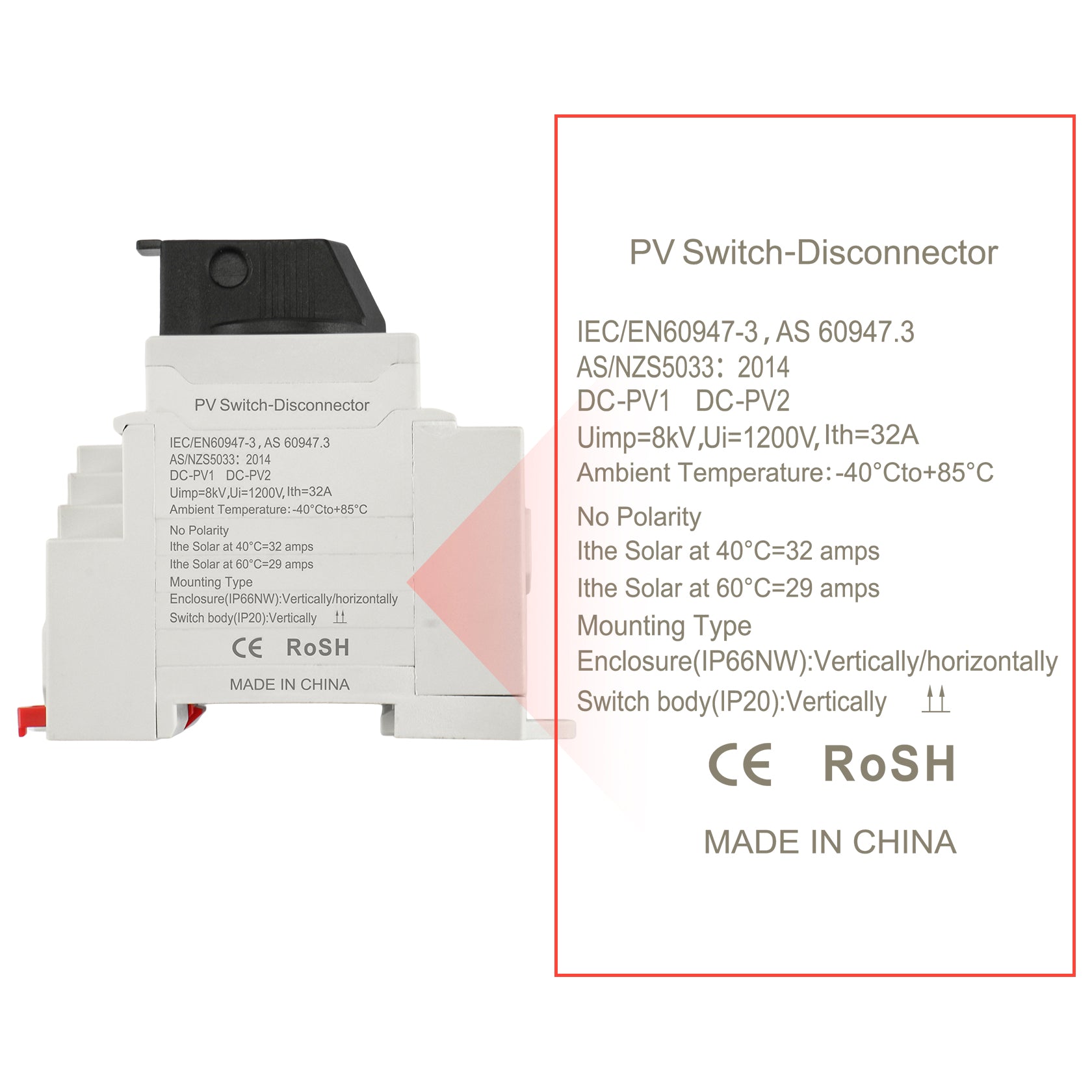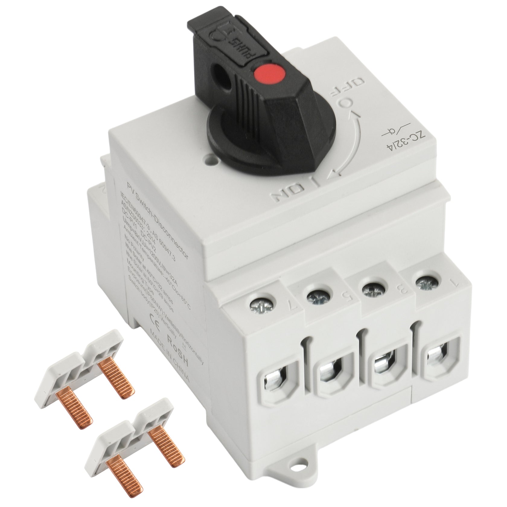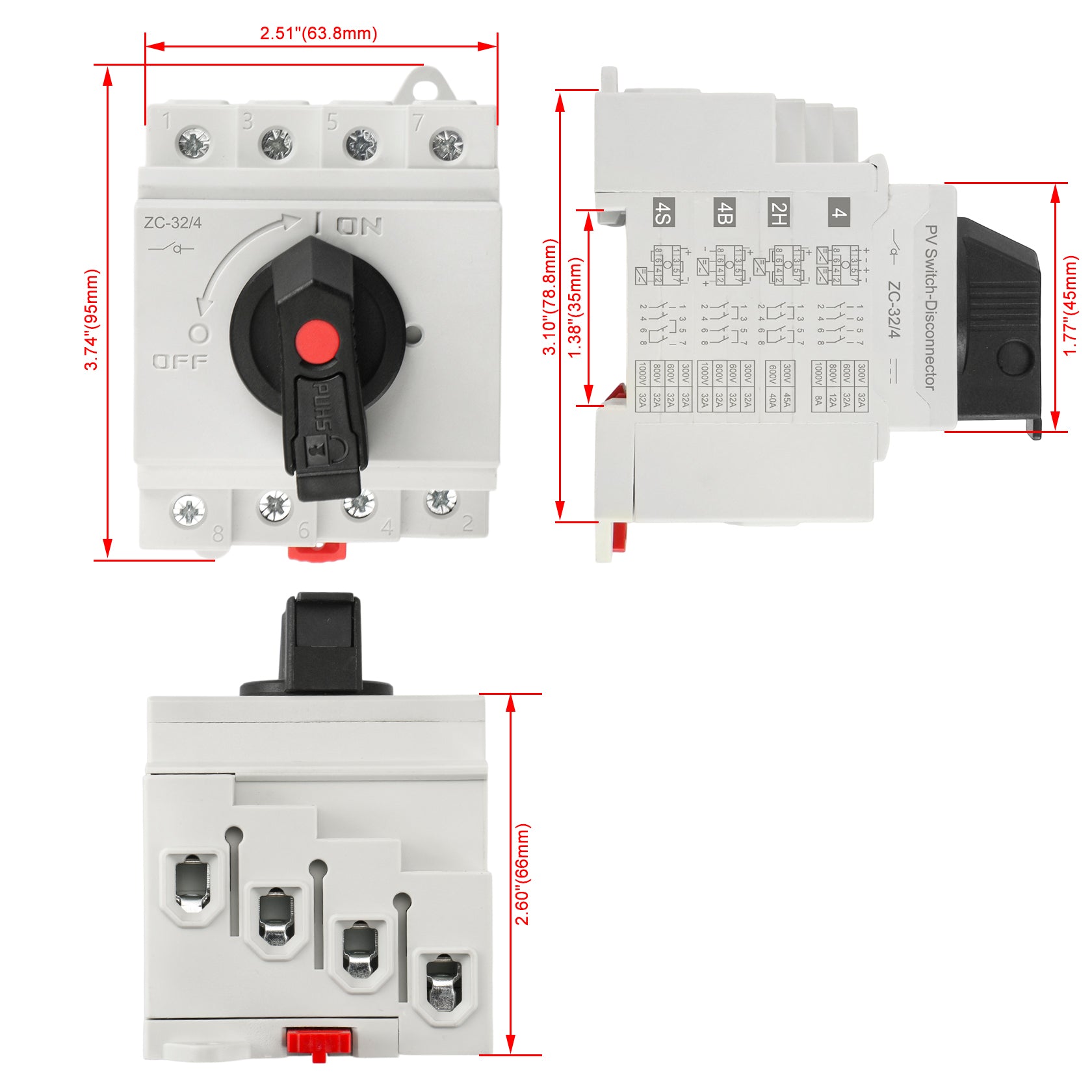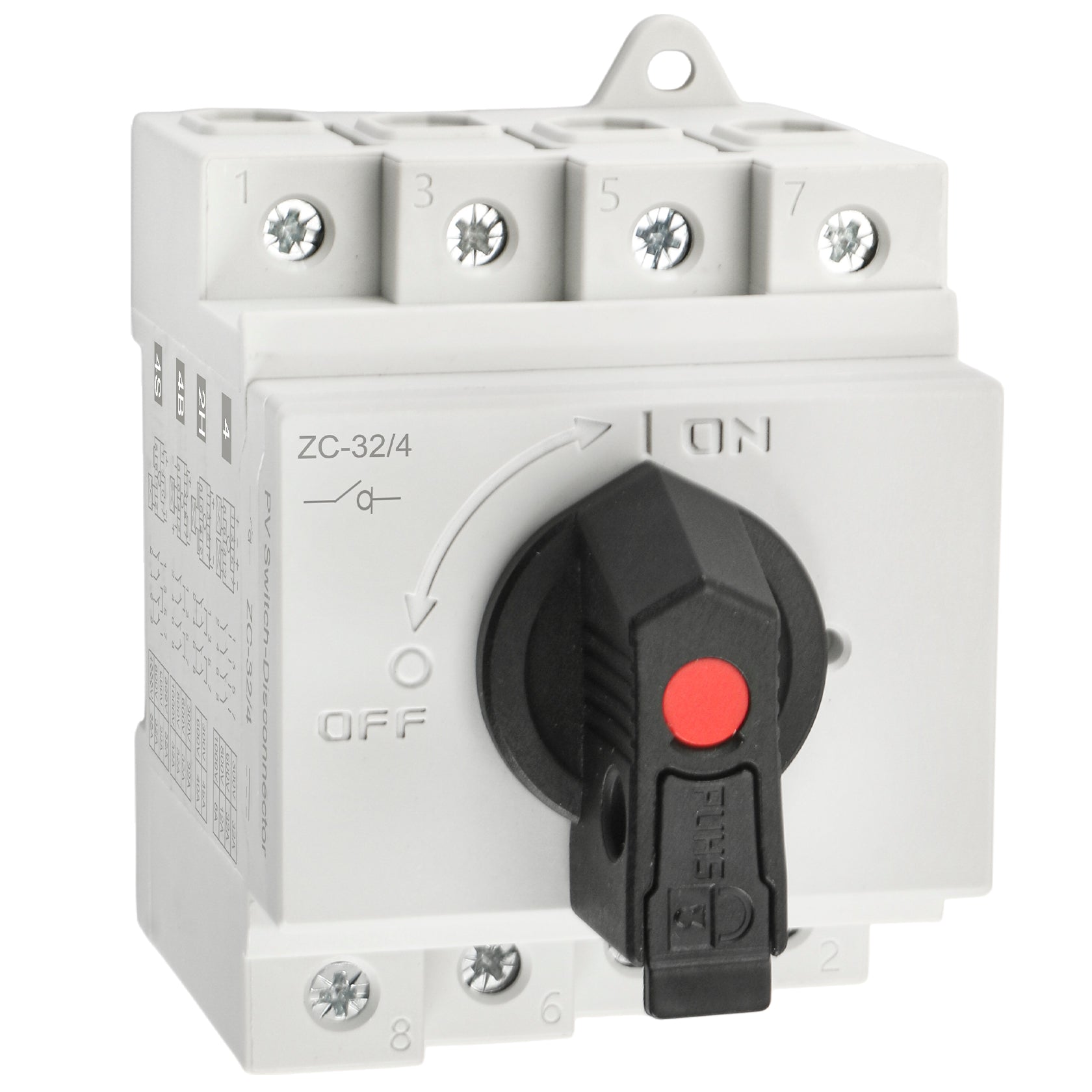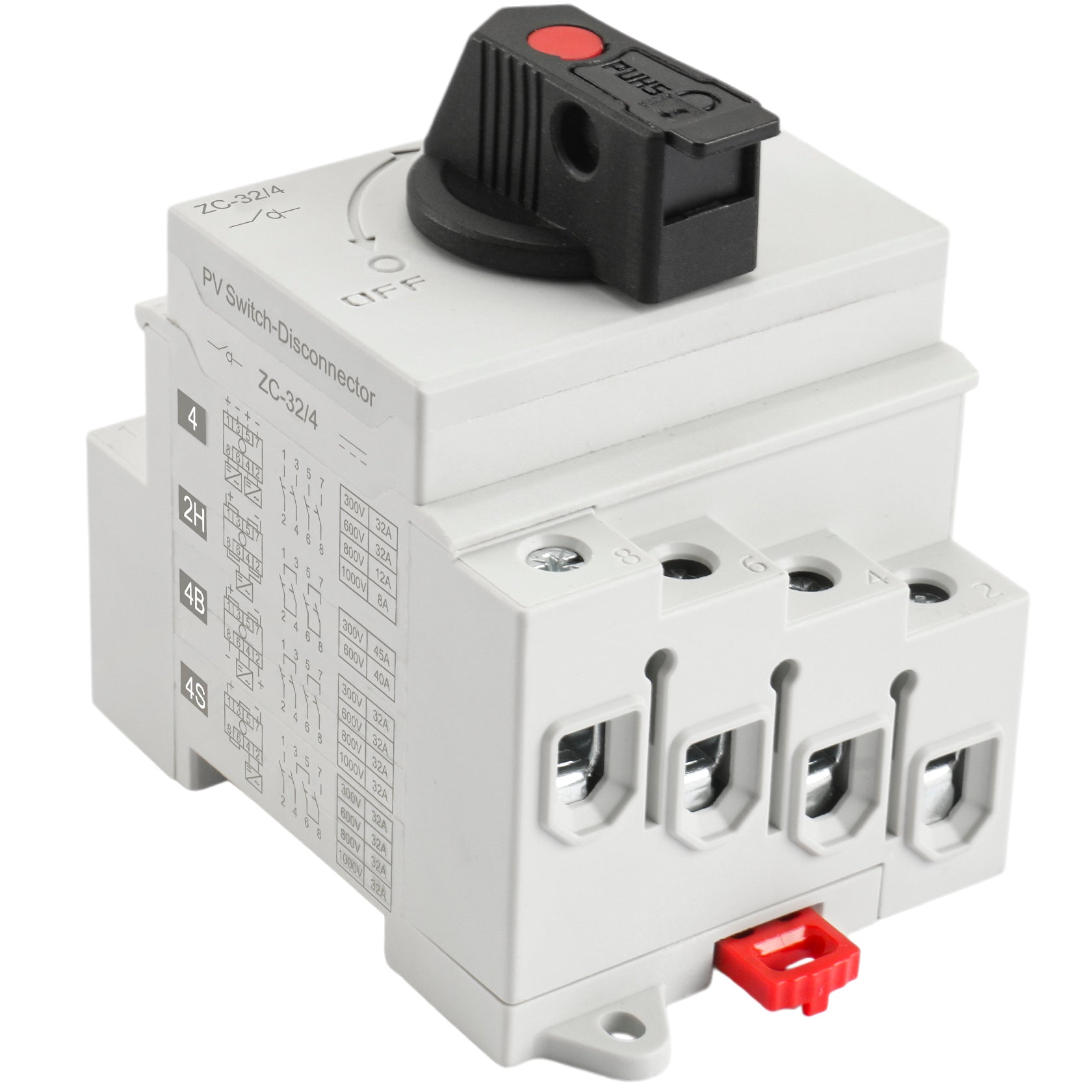 Heschen PV Switch-Disconnector, ZC-32/4, 32A 4P, No Polarity, 35mm DIN Rail Mount, IP20