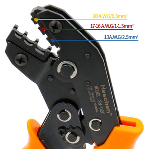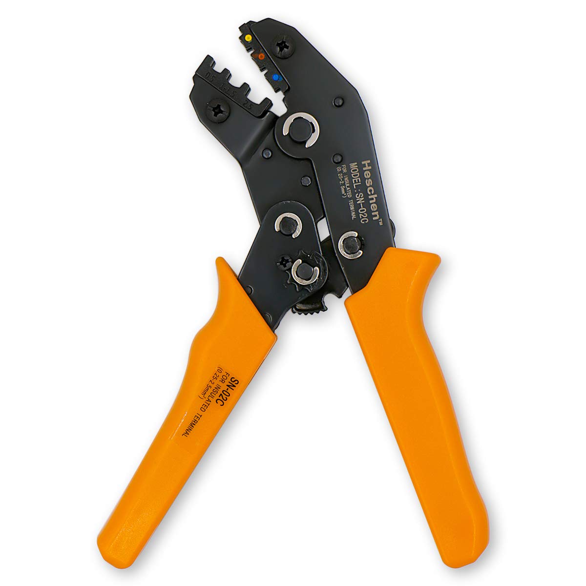 Heschen Mini Ratchet Crimper Plier SN-02C Ring & Insulated Terminals Crimping Tools Use for 0.5-2.5 mm² (20-13 AWG) Orange