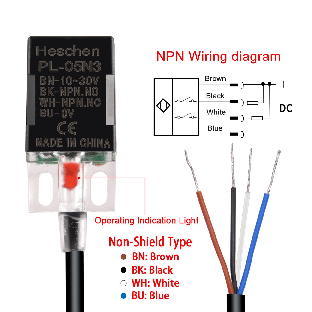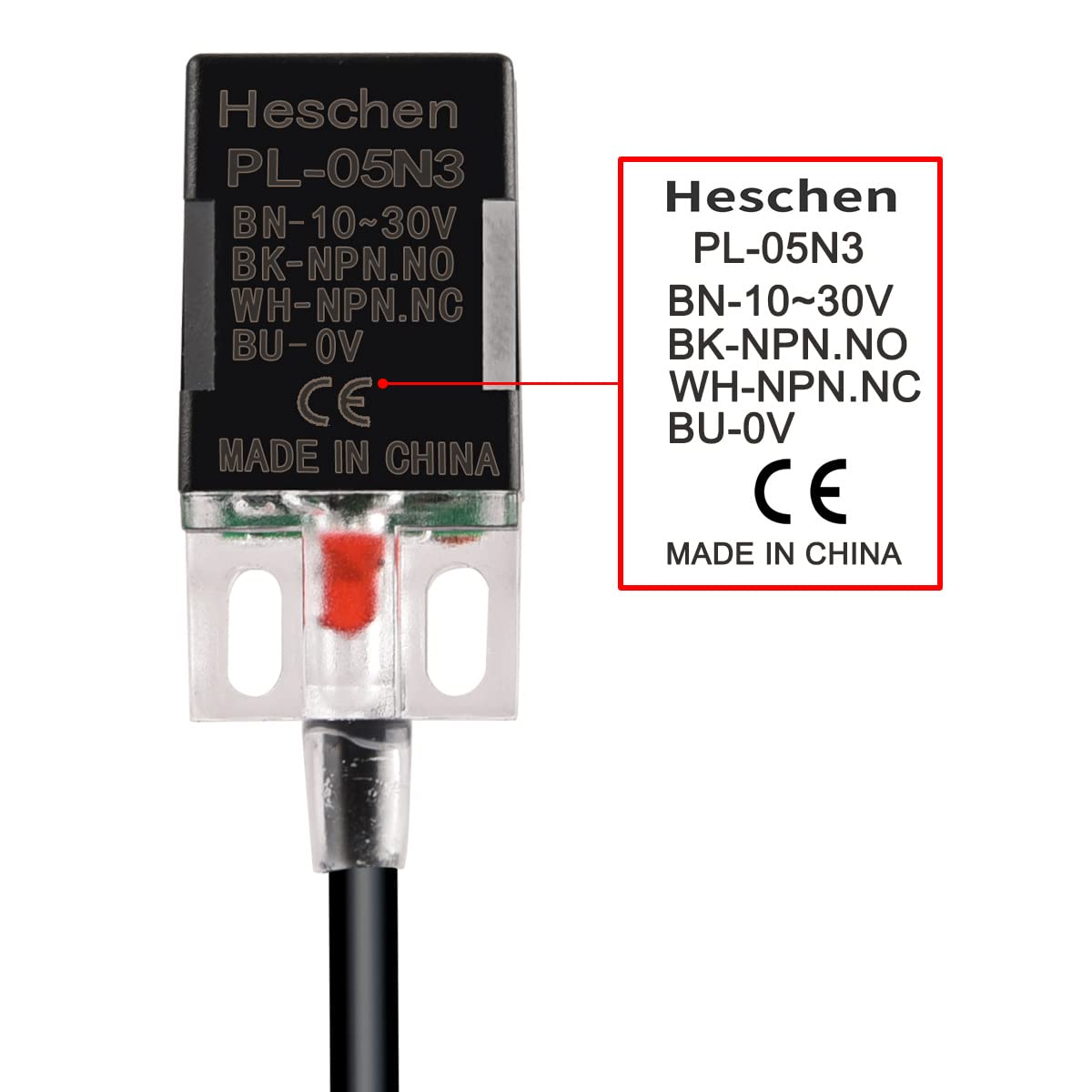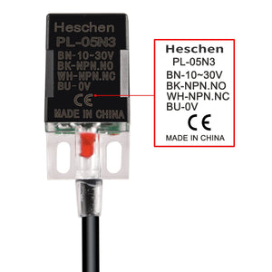 Heschen Square Inductive Proximity Sensor Switch, Non-Shield Type, PL-05N3, Detector Distance 5mm, 10-30VDC 200mA, NPN NO+NC, 4 Wire,Pack of 5