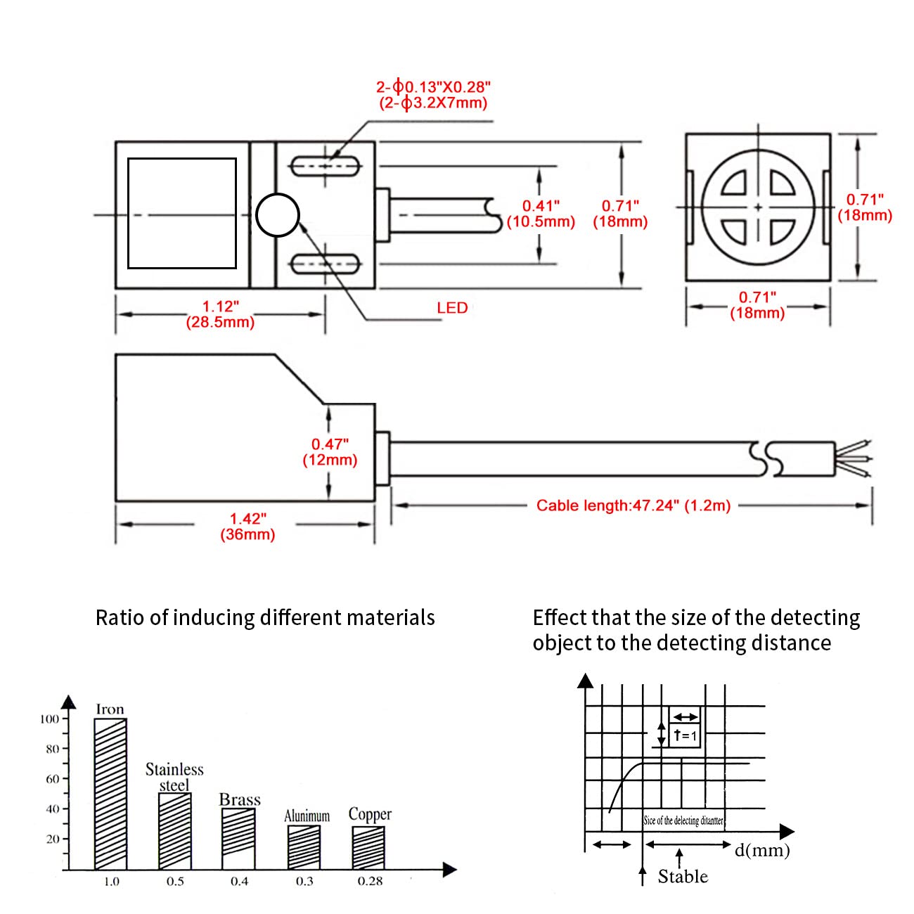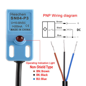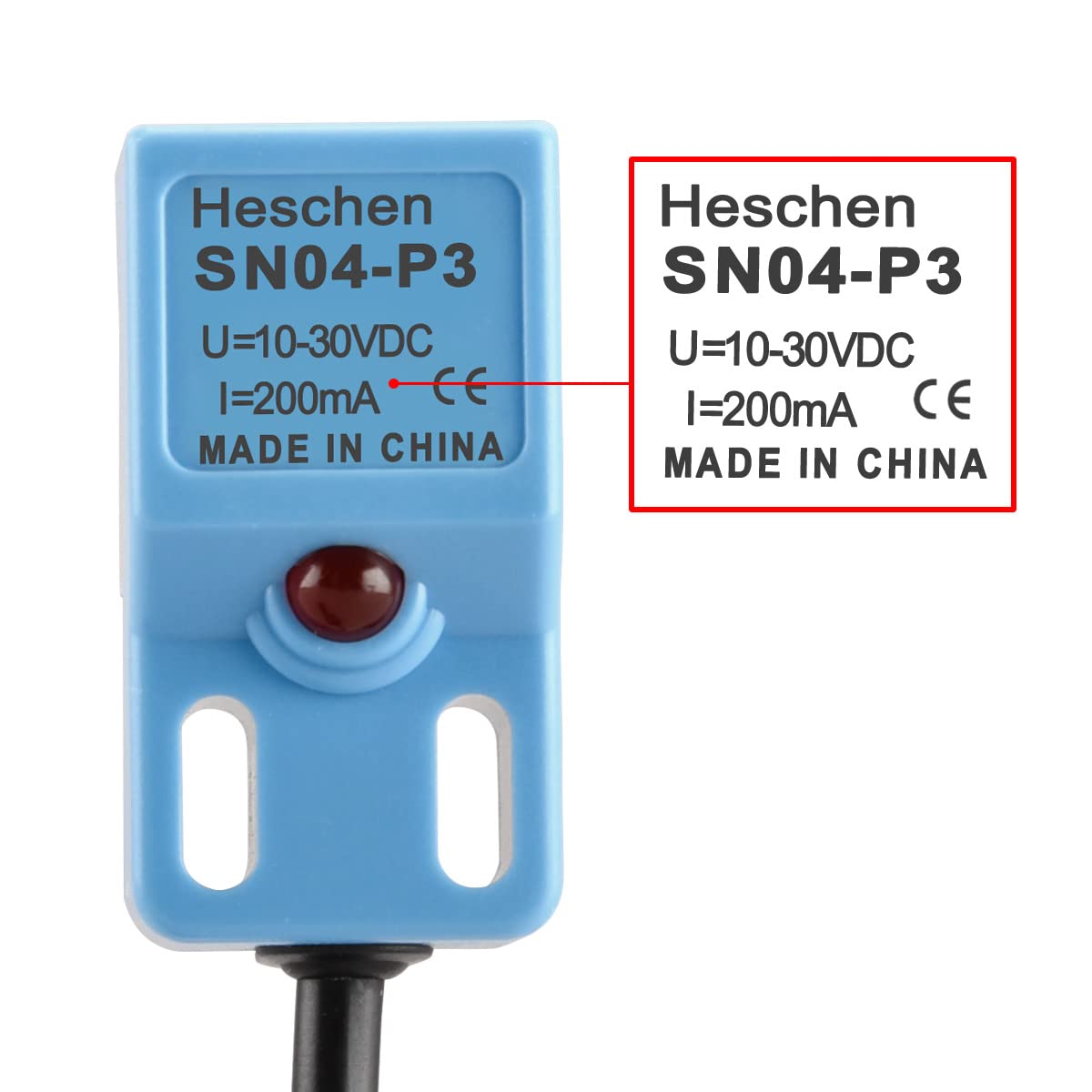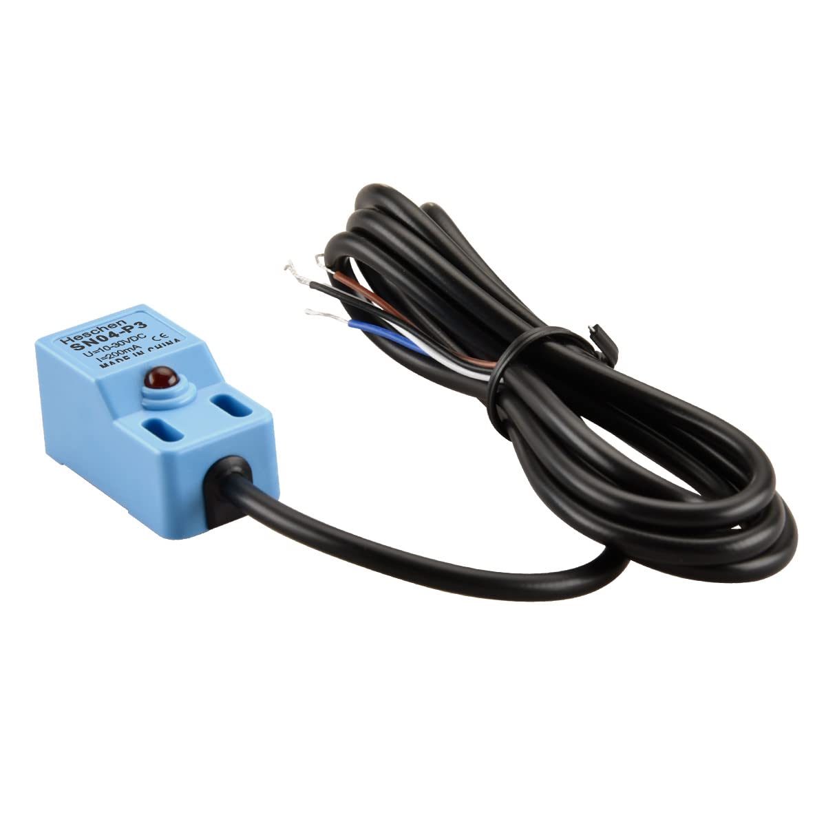 Heschen Square Inductive Proximity Sensor Switch, Non-Shield Type, SN04-P3, Detector Distance 5mm, 10-30VDC 200mA, PNP NO+NC, 4 Wire,Pack of 5