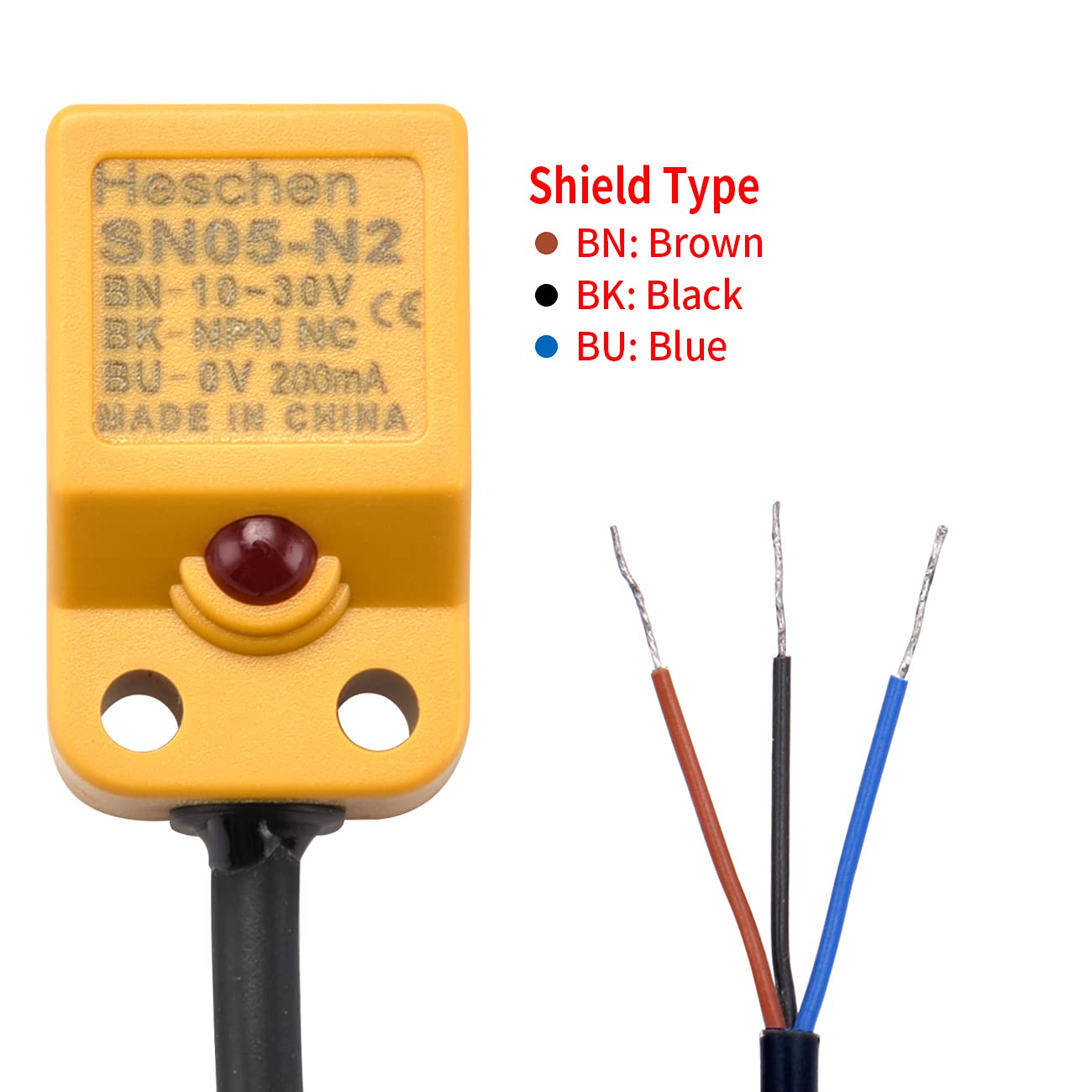Heschen Square Inductive Proximity Sensor Switch Non-Shield Type SN05-N2 Detector Distance 5mm 10-30VDC 200mA NPN Normally Closed(NC) 3 Wire,Pack of 5