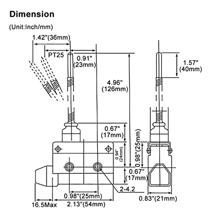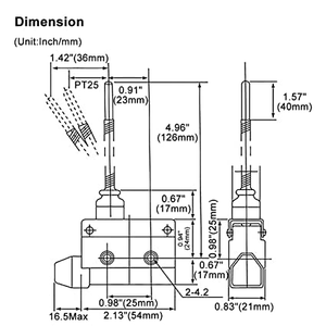 - Contact Type: SPDT 1NO+1NC; Terminal Style: Screw*3;