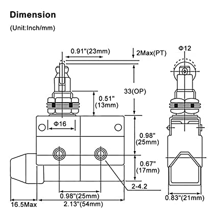 - Contact Type: SPDT 1NO+1NC; Terminal Style: Screw*3;
