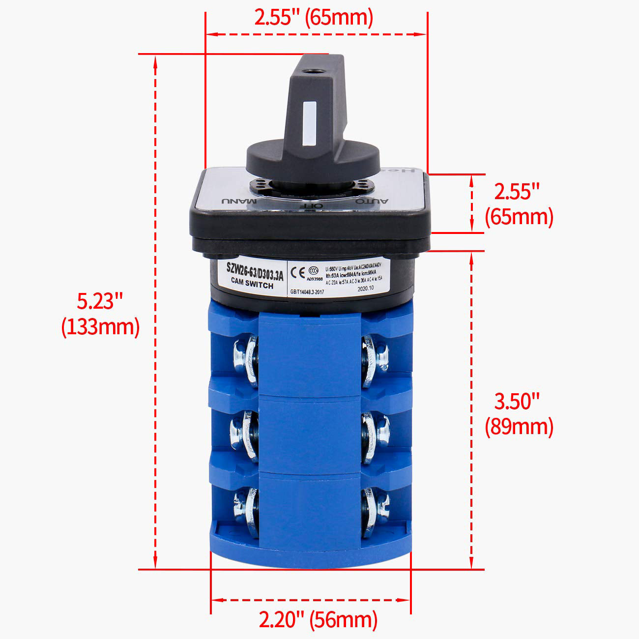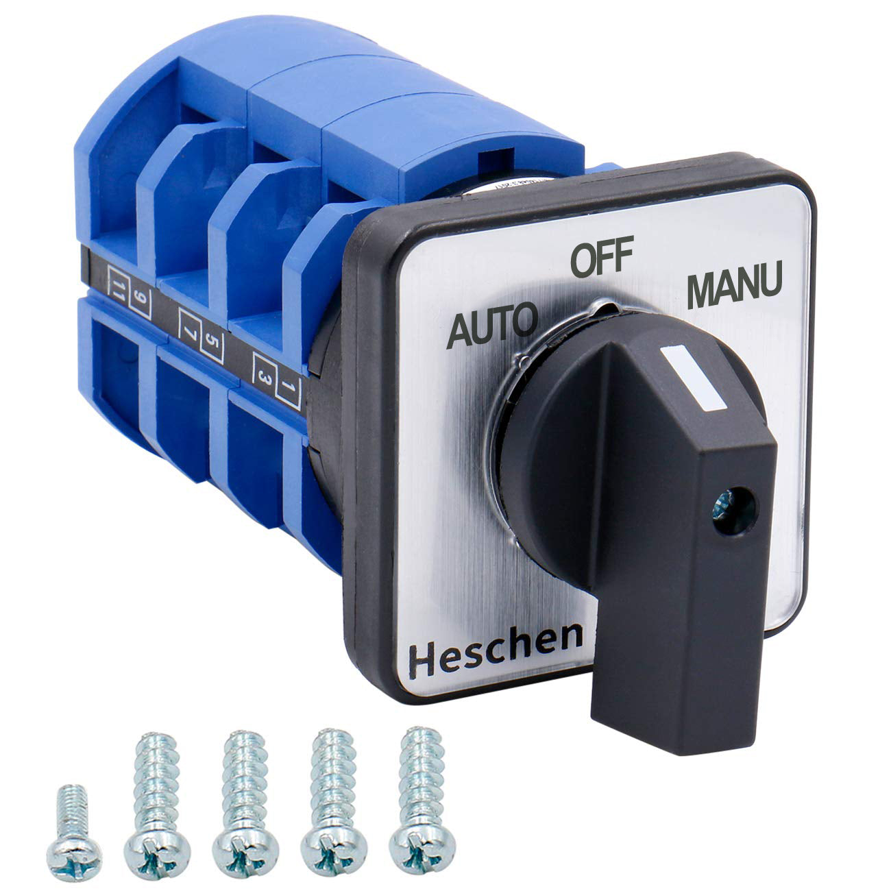 Heschen Universal Rotary Cam Selector Changeover Switch SZW26-63/D303.3A 660V 63A AUTO-OFF-MANU 3 Position 3 Phase 12 Terminals CE