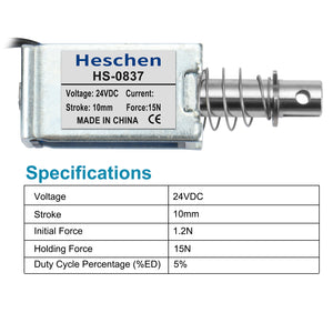 Solenoid electromagnet HS-0837 DC 24V 0.4A 15N 4LB 10mm stroke push pull type open frame