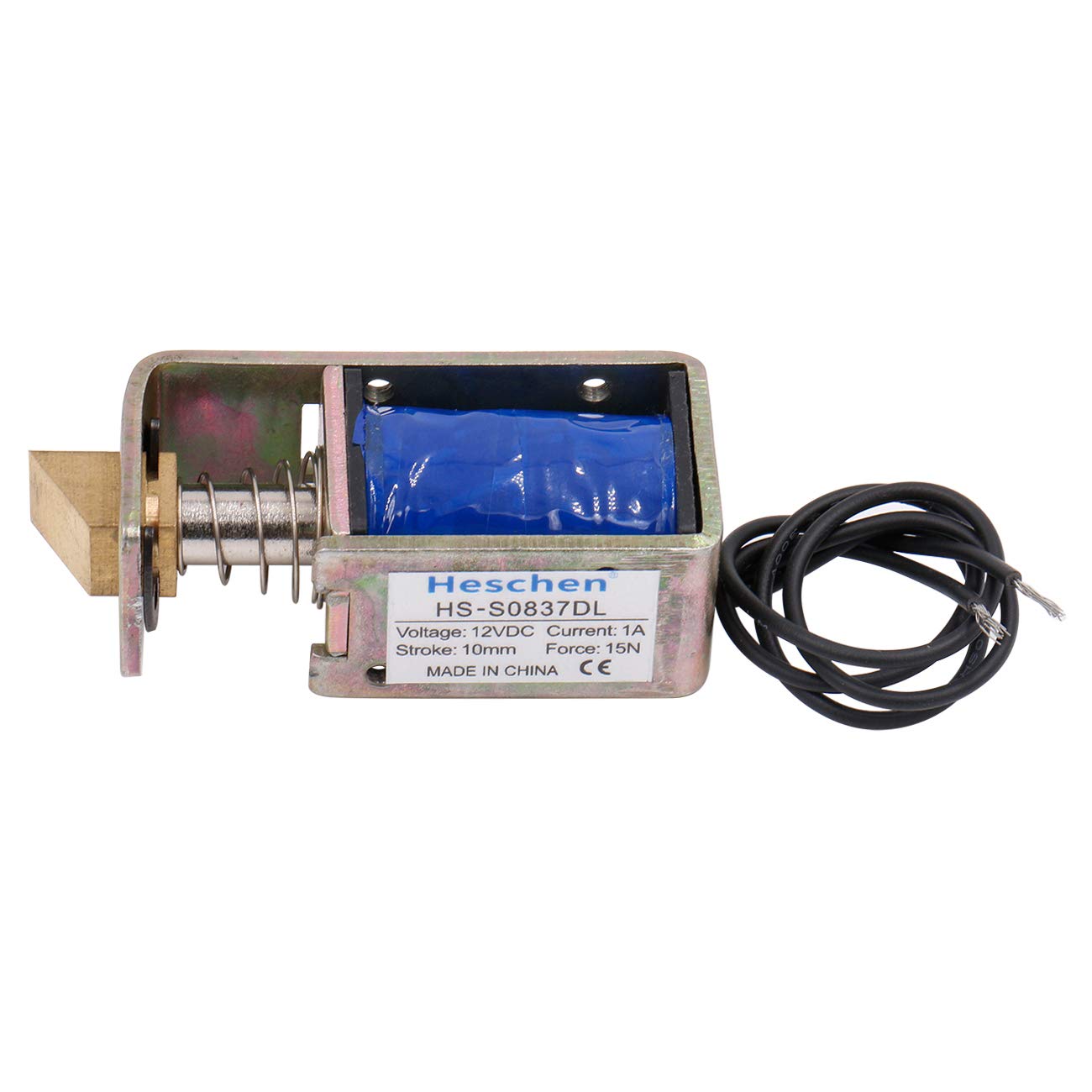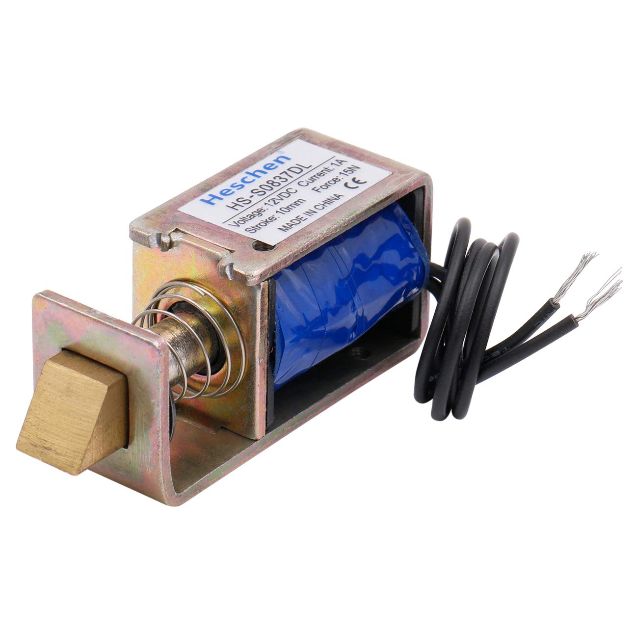 Heschen Open Frame Solenoid Electromagnet HS-S0837DL 1A 15N 10mm Stroke Door Lock