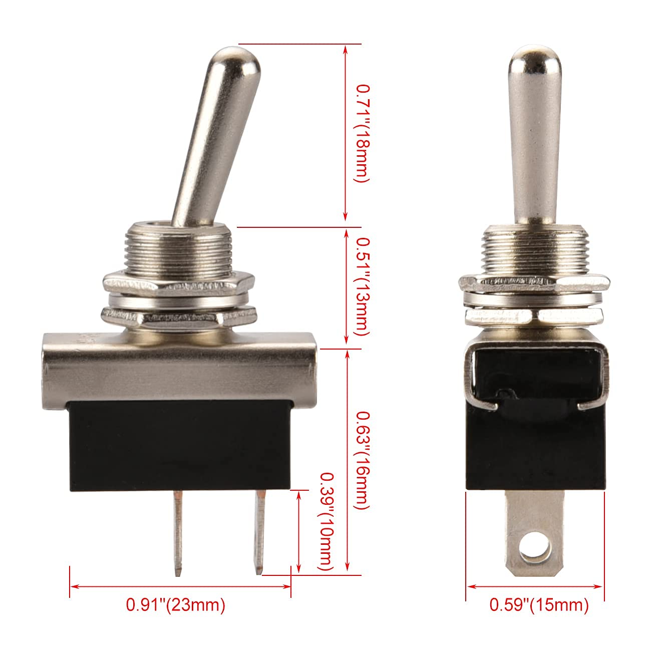 Heschen Metal Toggle switch Flick Flip 12V 25A SPST On/Off 2 positon 2 pin for Car Dash Light with waterproof cap Pack of 5