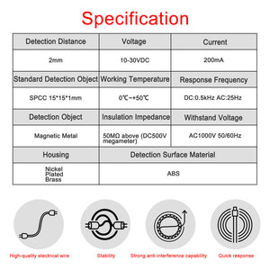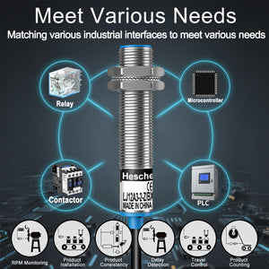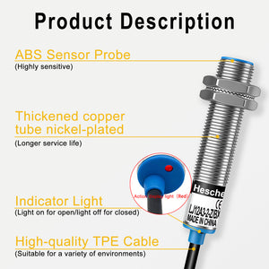 Heschen Inductive Proximity Sensor Switch LJ12A3-2-Z/BX Detector 2mm 10-30 VDC 200mA NPN Normally Open(NO) 3 Wire