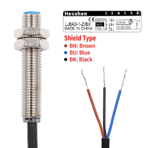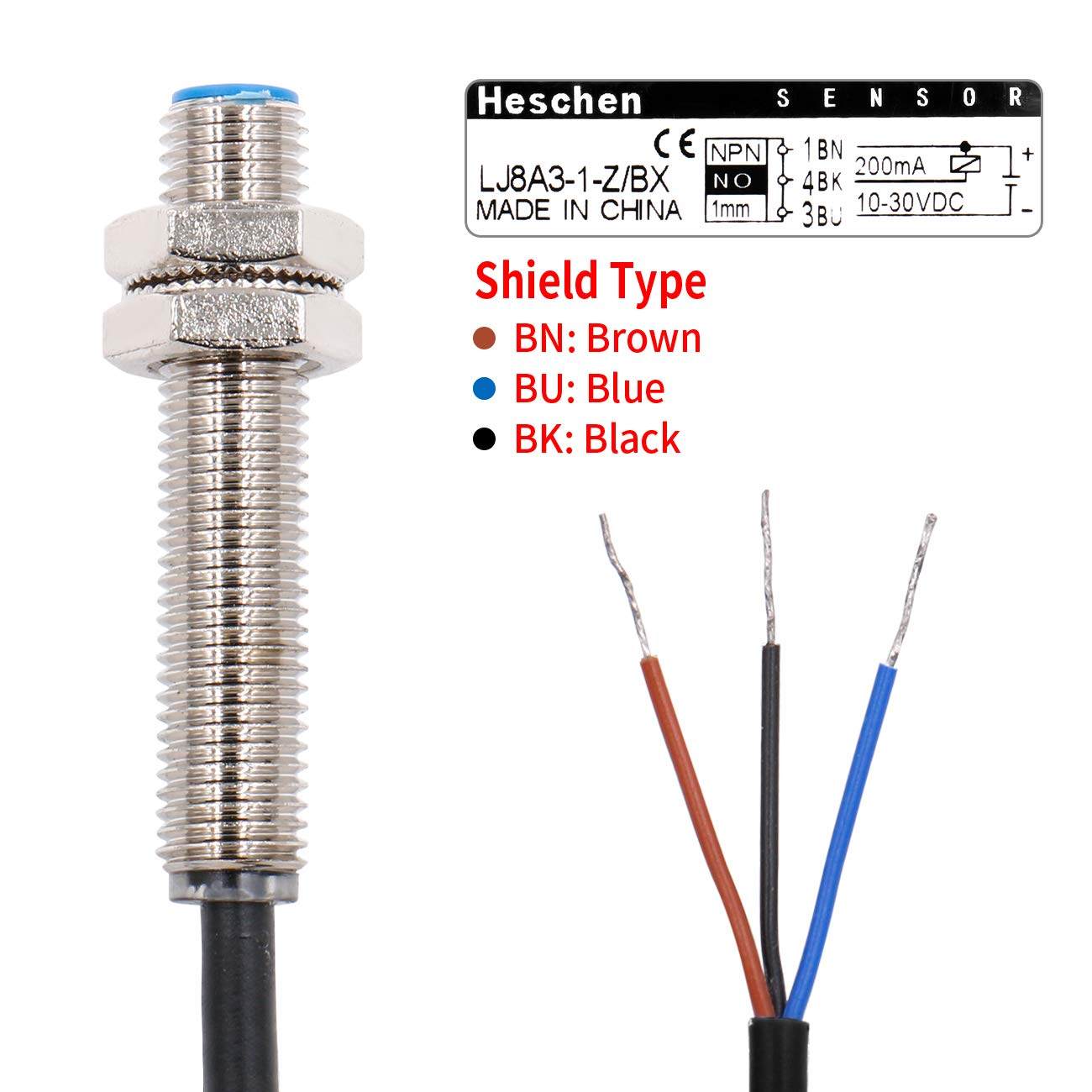 Heschen M8 Inductive Proximity Sensor Switch Shield Type LJ8A3-1-Z/BX Detector 1mm 10-30VDC 200mA NPN Normally Open(NO) 3 Wire